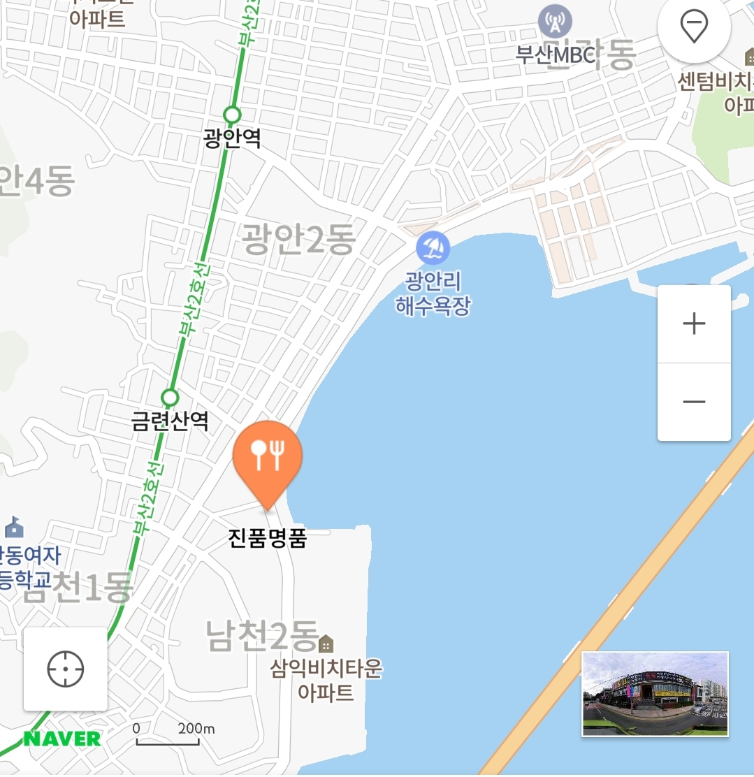 위치는 광안리 해수욕장 끝자락에 위치해있는데 바다보면서 걸어가기 먼 거리는 아니었어요. 광안리 테마거리에서 걸어가니 한 10-15분 걸린듯해요.