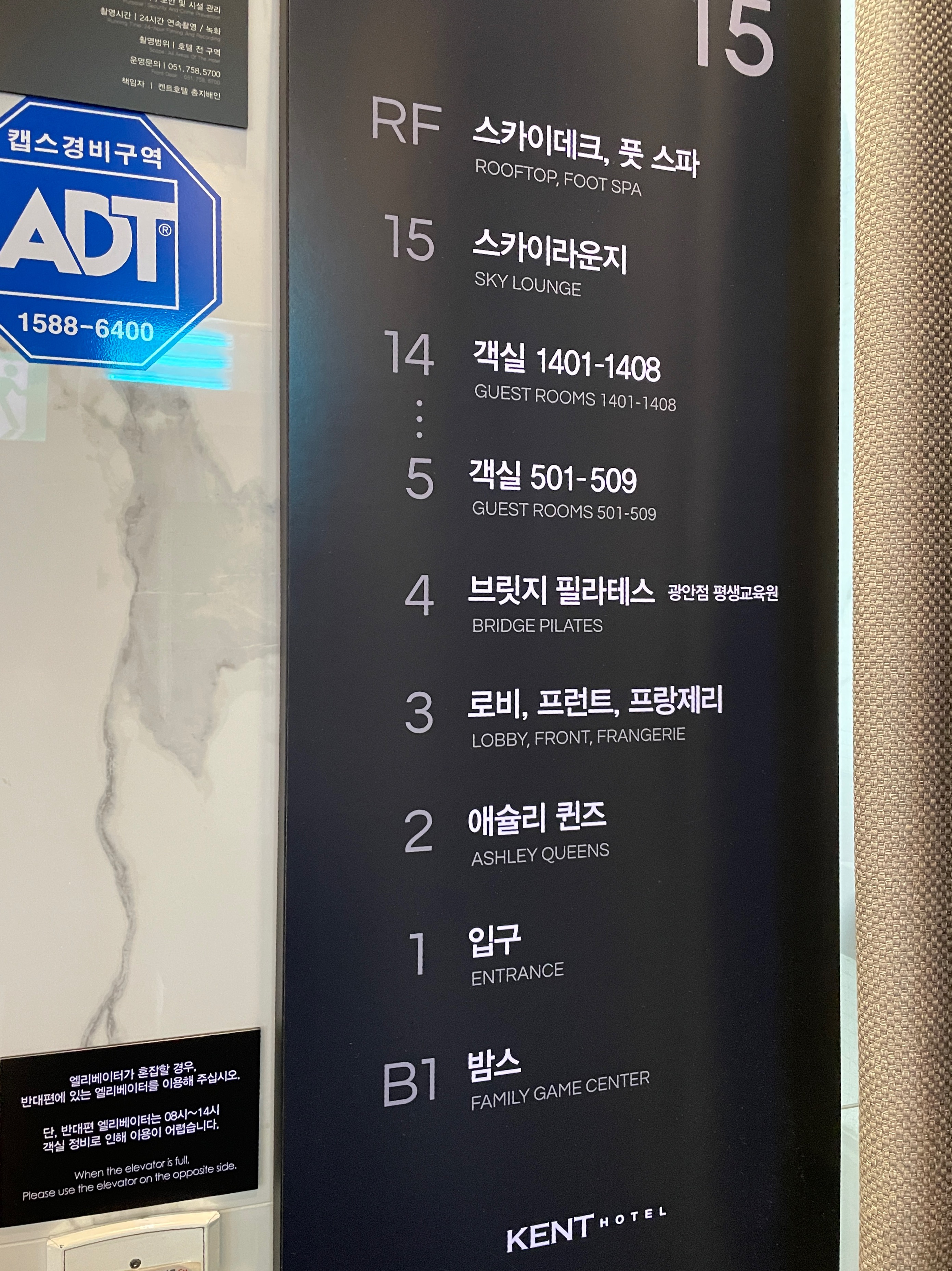 켄트호텔은 켄싱턴호텔계열이라 조식이 맛있다는 소문을 익히 들었습니다. 그럼 광안리 켄트호텔을 한 번 둘러볼까요? 참고로 저는 출장비 금액에 맞춰야 해서 오션뷰 객실에서 숙박하진 못했지만 라운지와 호텔 복도에서 충분히 오션뷰를 감상할 수 있었습니다.