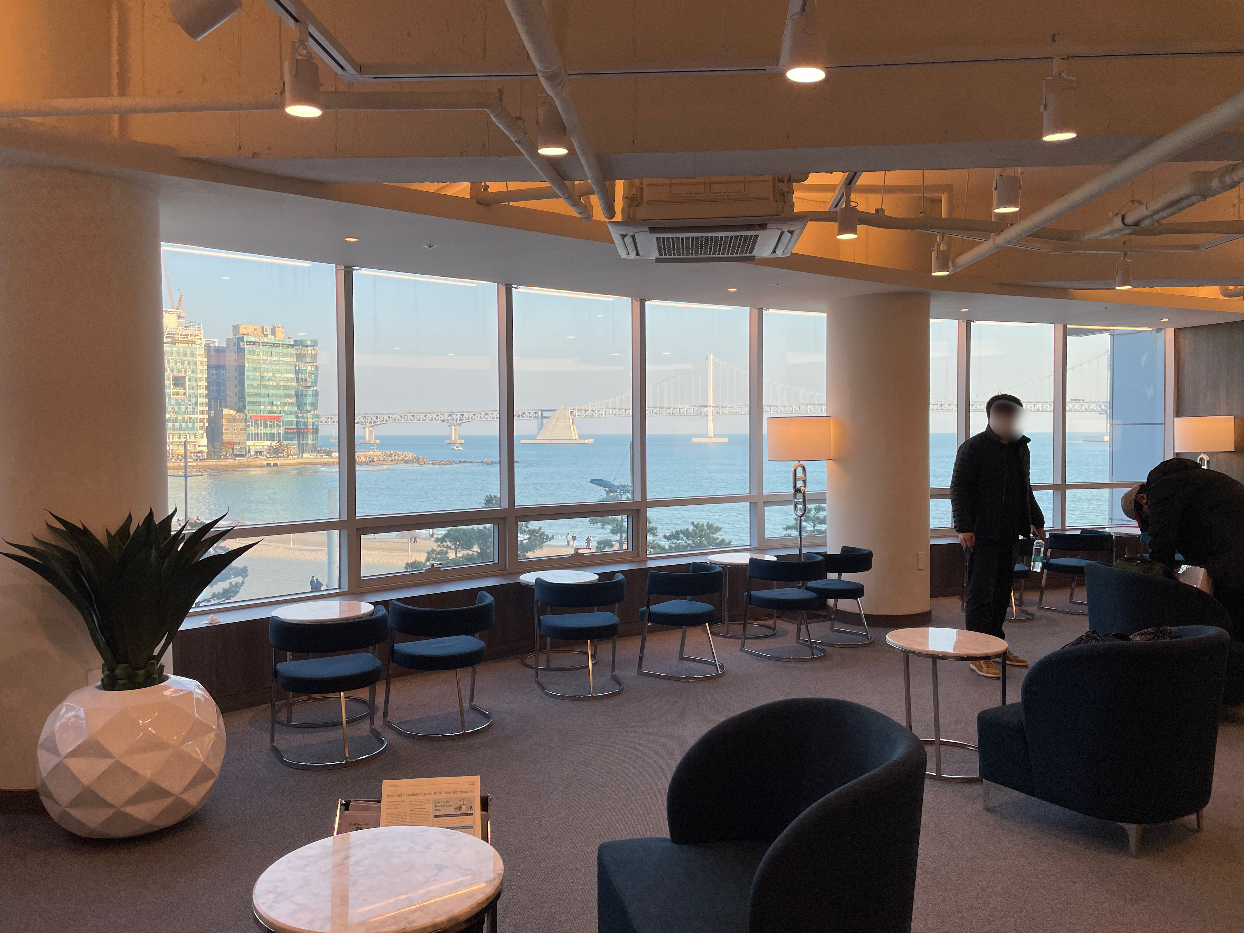 3층 로비가 진짜 앉아서 바다 바라보기에 좋아요. 밤에는 광안대교에 불이 켜지면서 야경도 아름다우니 야경 또한 놓치지 않으시길 바랍니다.
