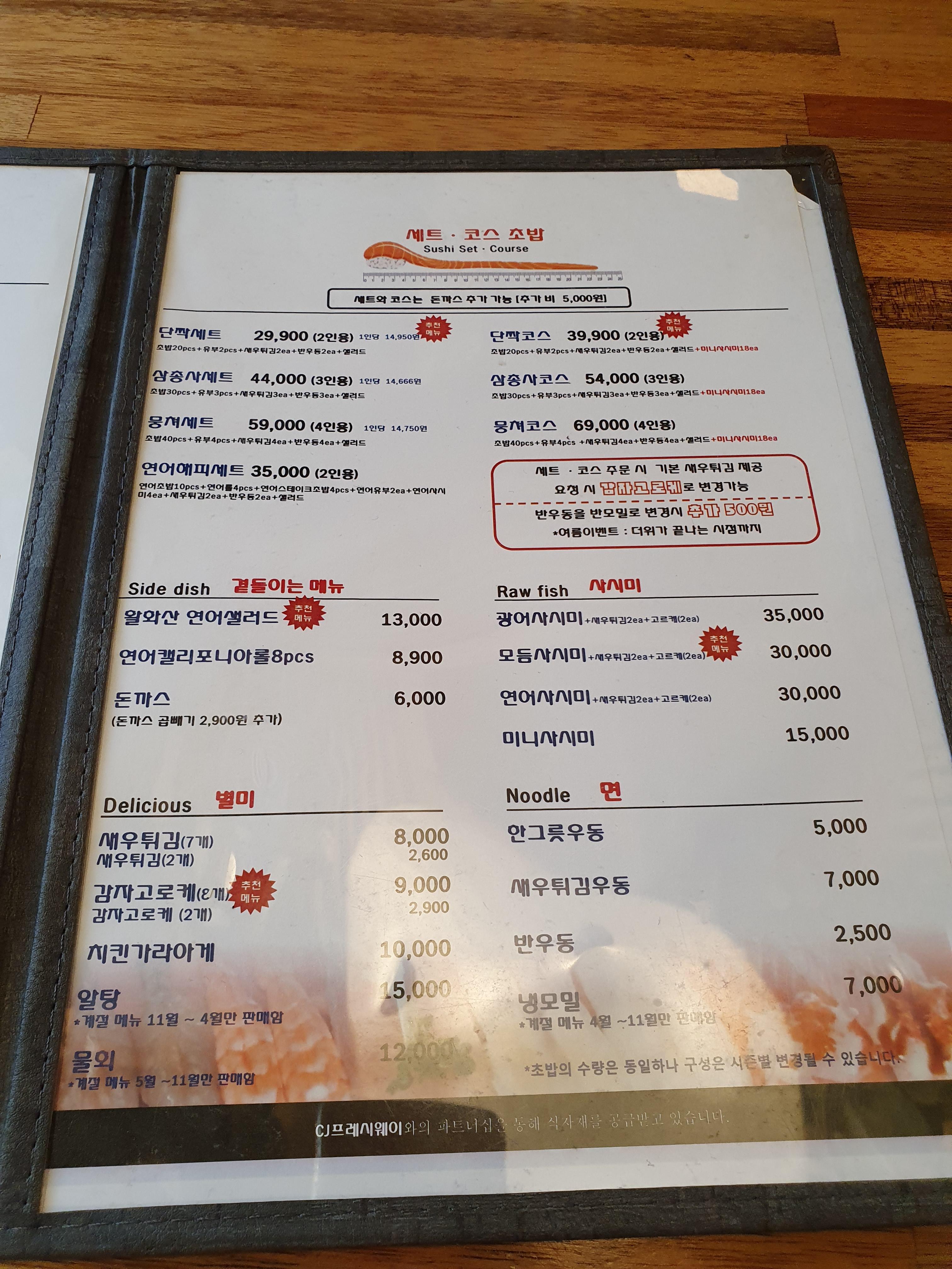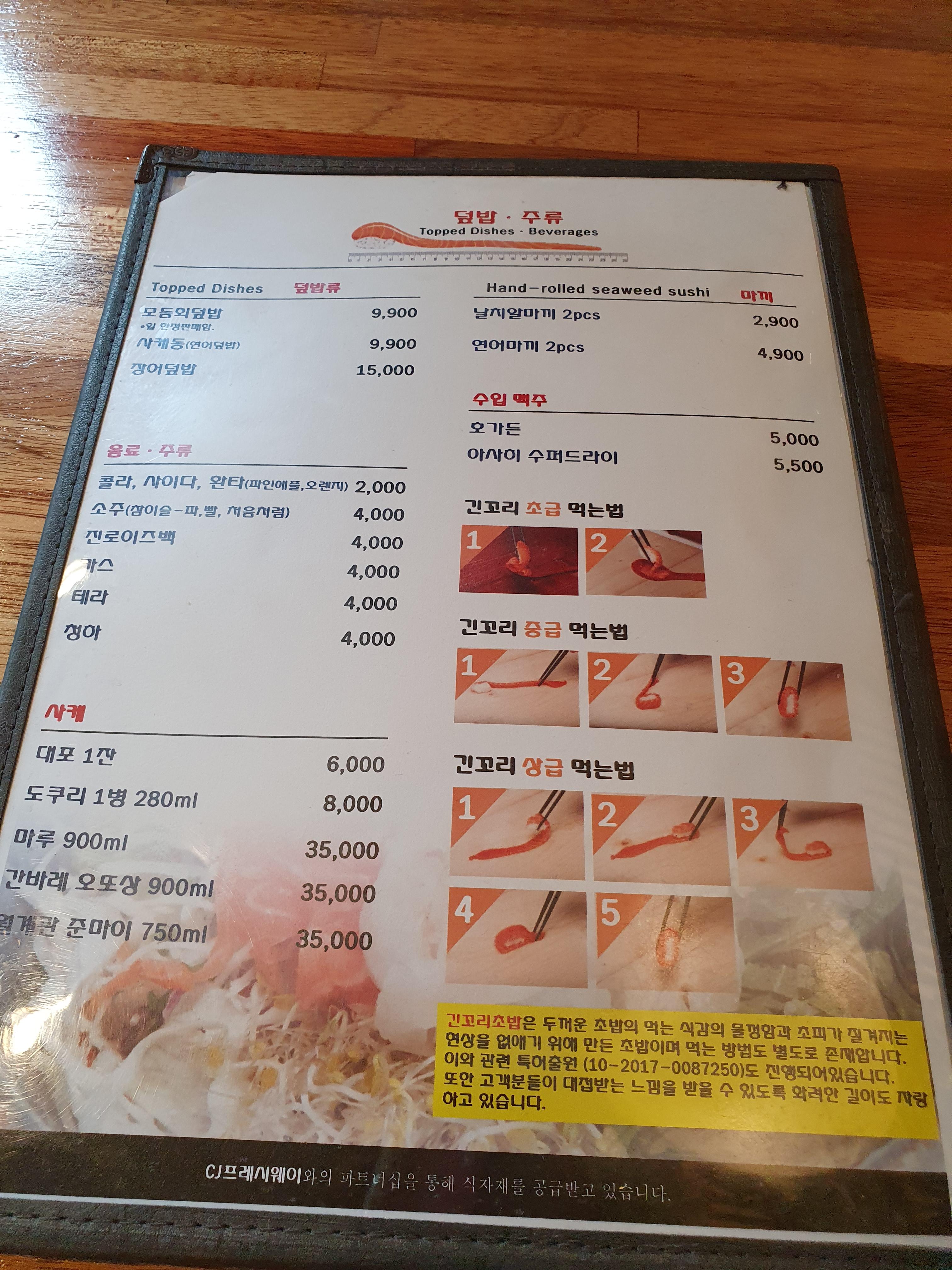 이렇게나 많은 메뉴 중에서 저는 단짝세트를 주문했구요, 음식이 나오는 동안 긴꼬리초밥 상급자코스로 먹는 법을 공부했어요.