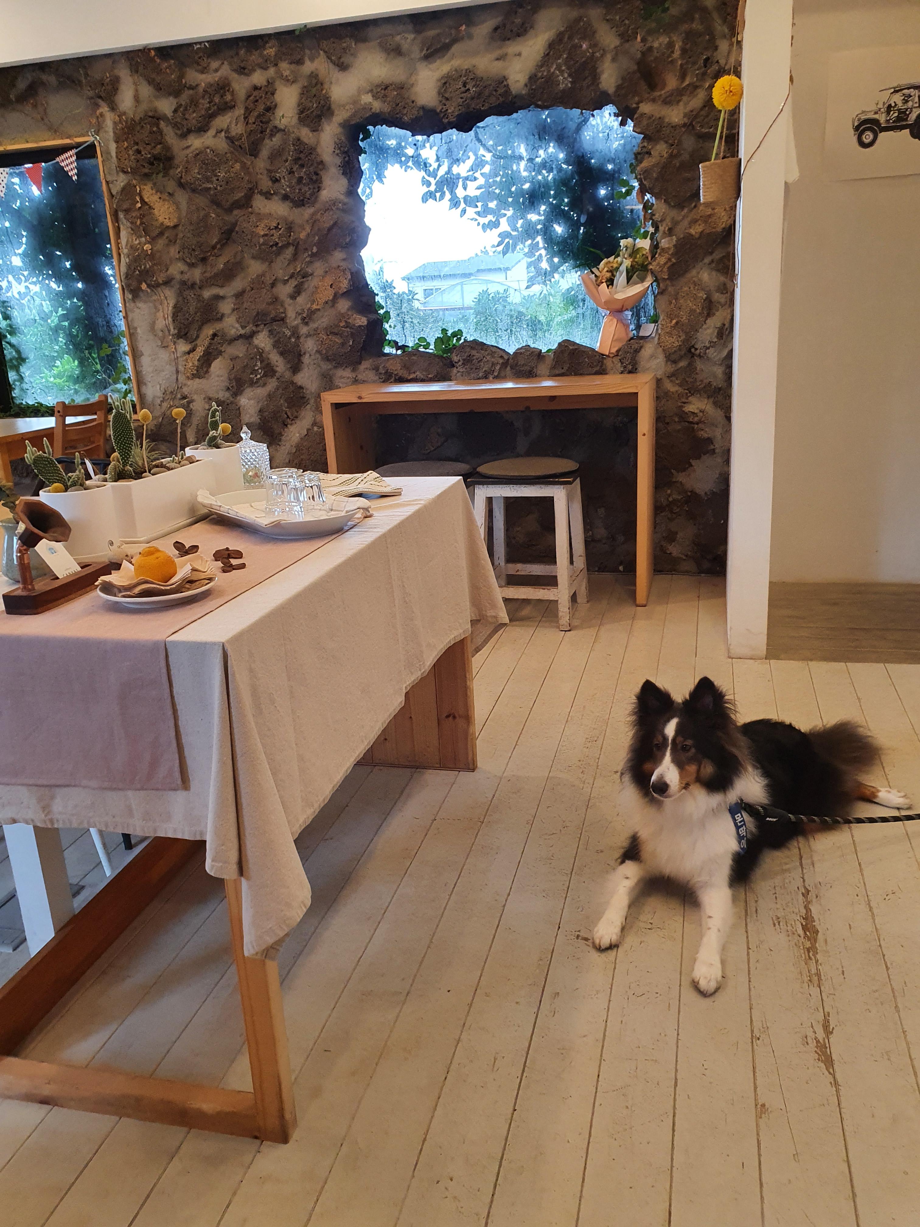 카페 내부로 들어오자마자 강아지가 짖어서 깜짝 놀랐는데 사장님께서 잘 진정시켜주셨어요. 자기 일을 잘해내는 너란 녀석!!