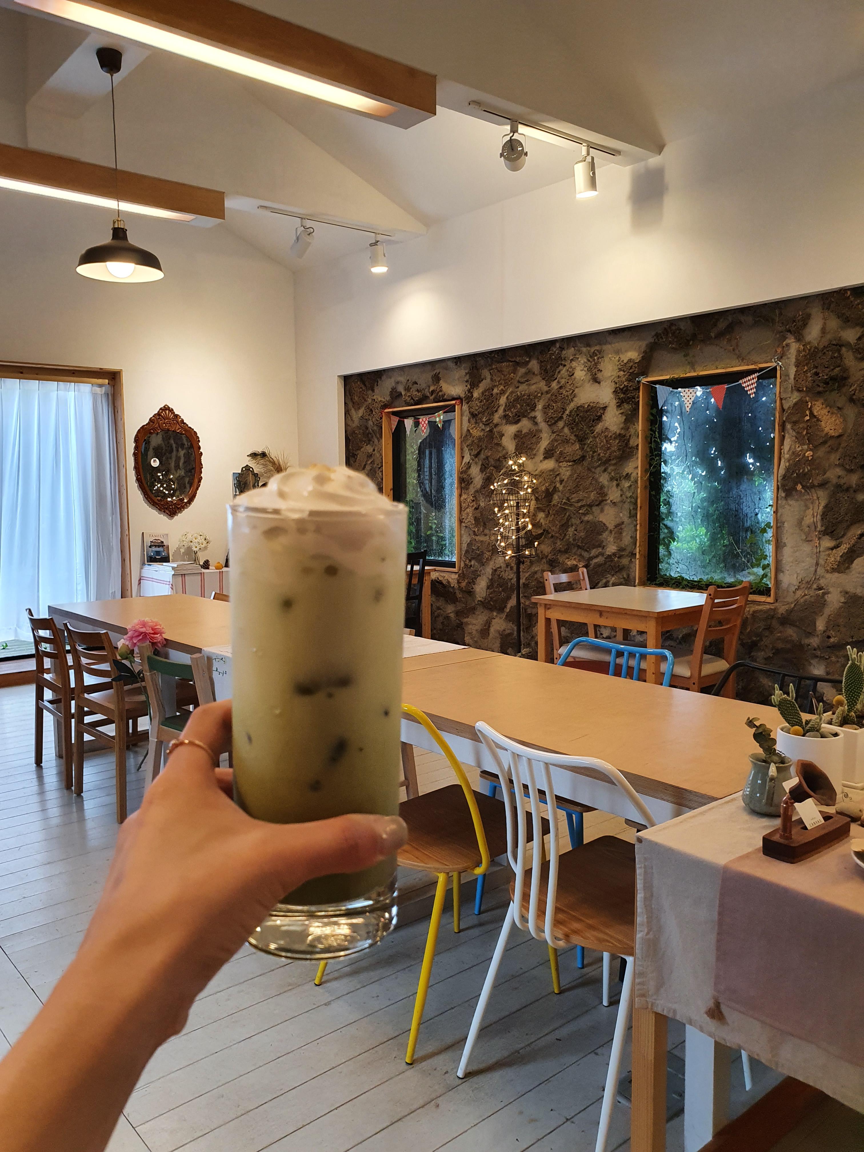 너무 긴장했어서 그런지 카페에서 잠시 쉬었다 가야겠더라구요. 그래서 휴애리 자연생태공원 근처 카페를 찾다가 우연히 작은 동네에 있는 카페에 갔는데 카페가 진짜 예뻤어요.