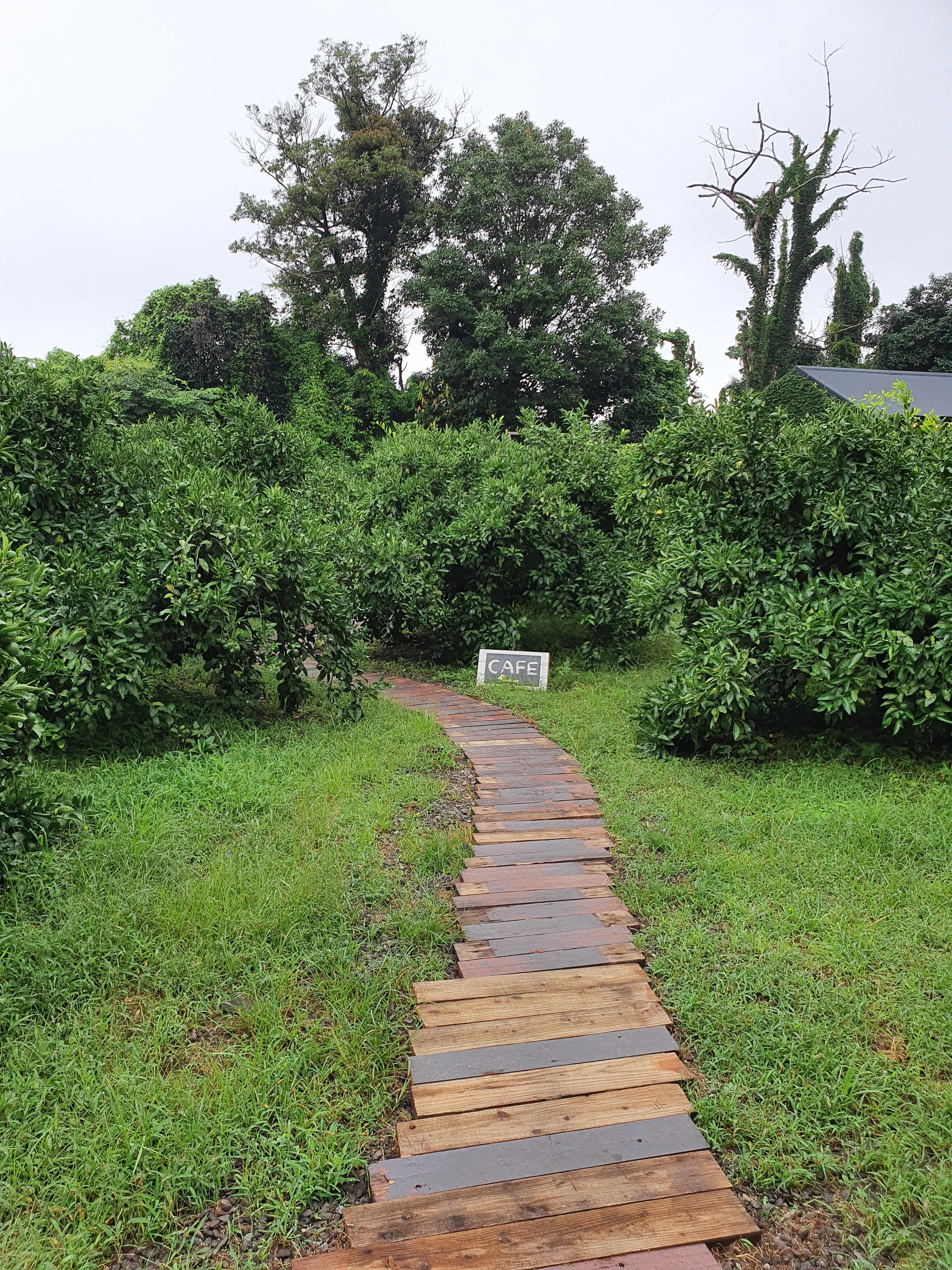 카페 들어가는 길인데 숲속으로 들어가는 기분이에요. 구불구불한 나무길을 따라 들어가야해요!