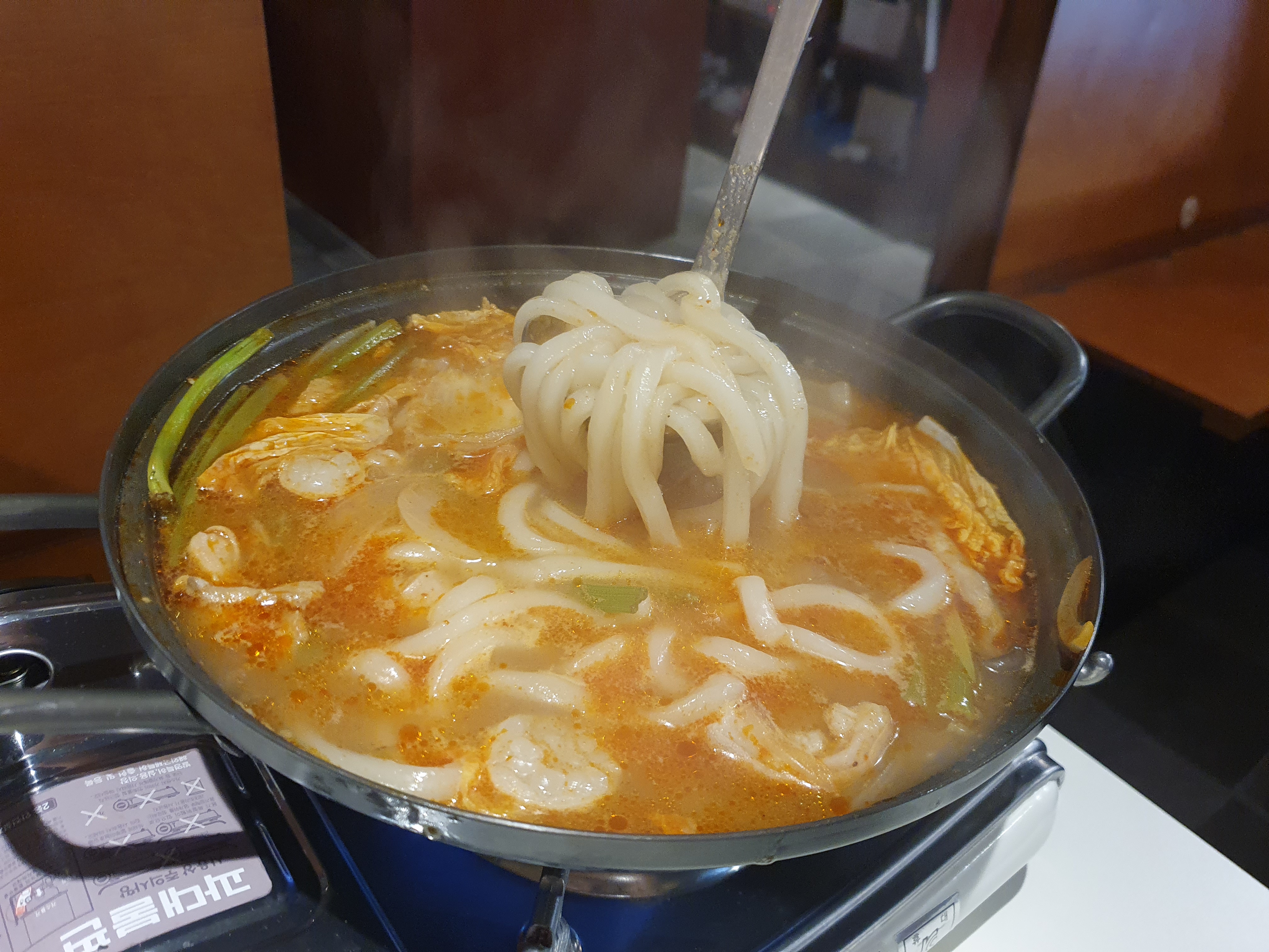 나온 대창전골와 우동사리입니다.