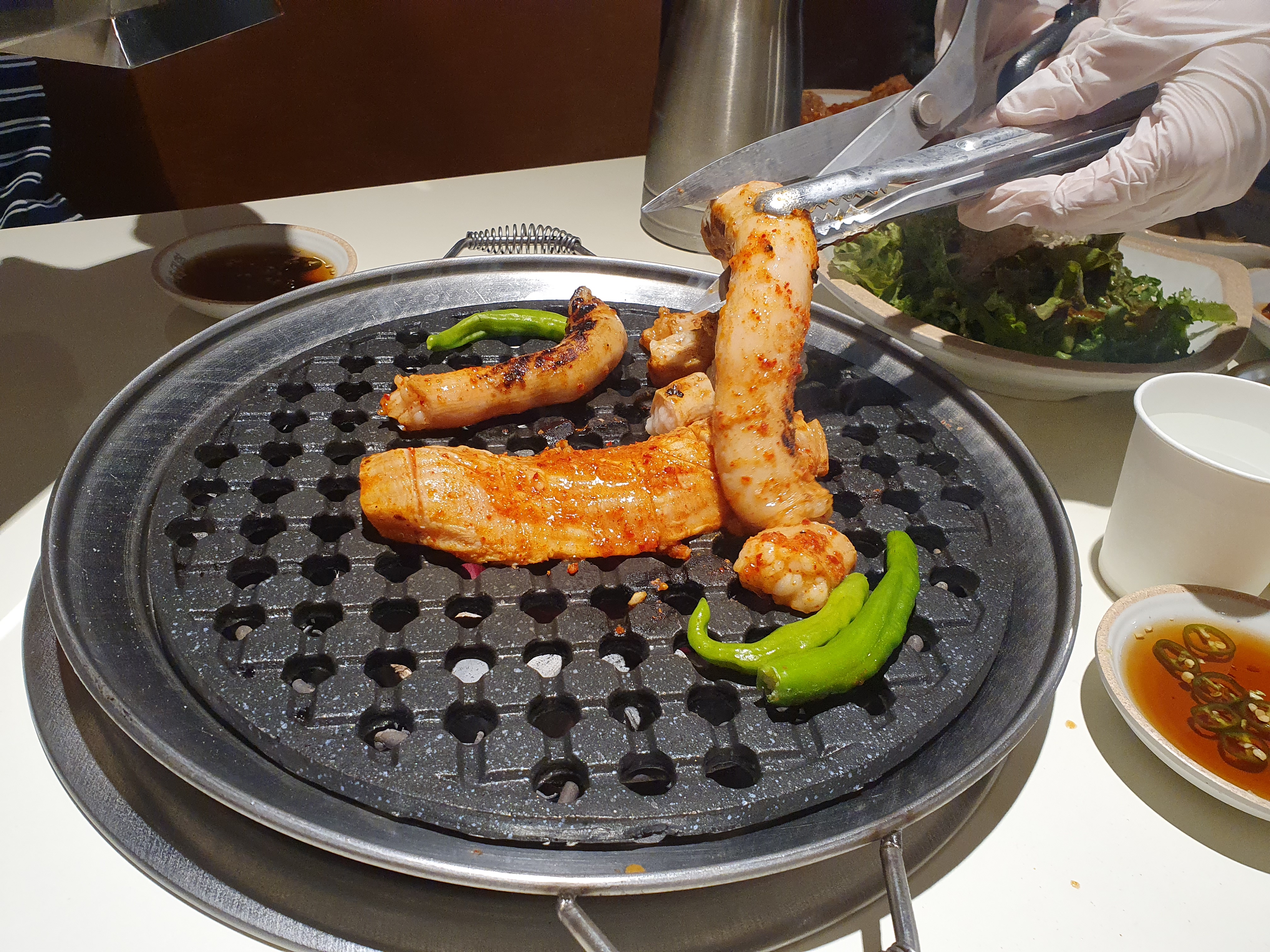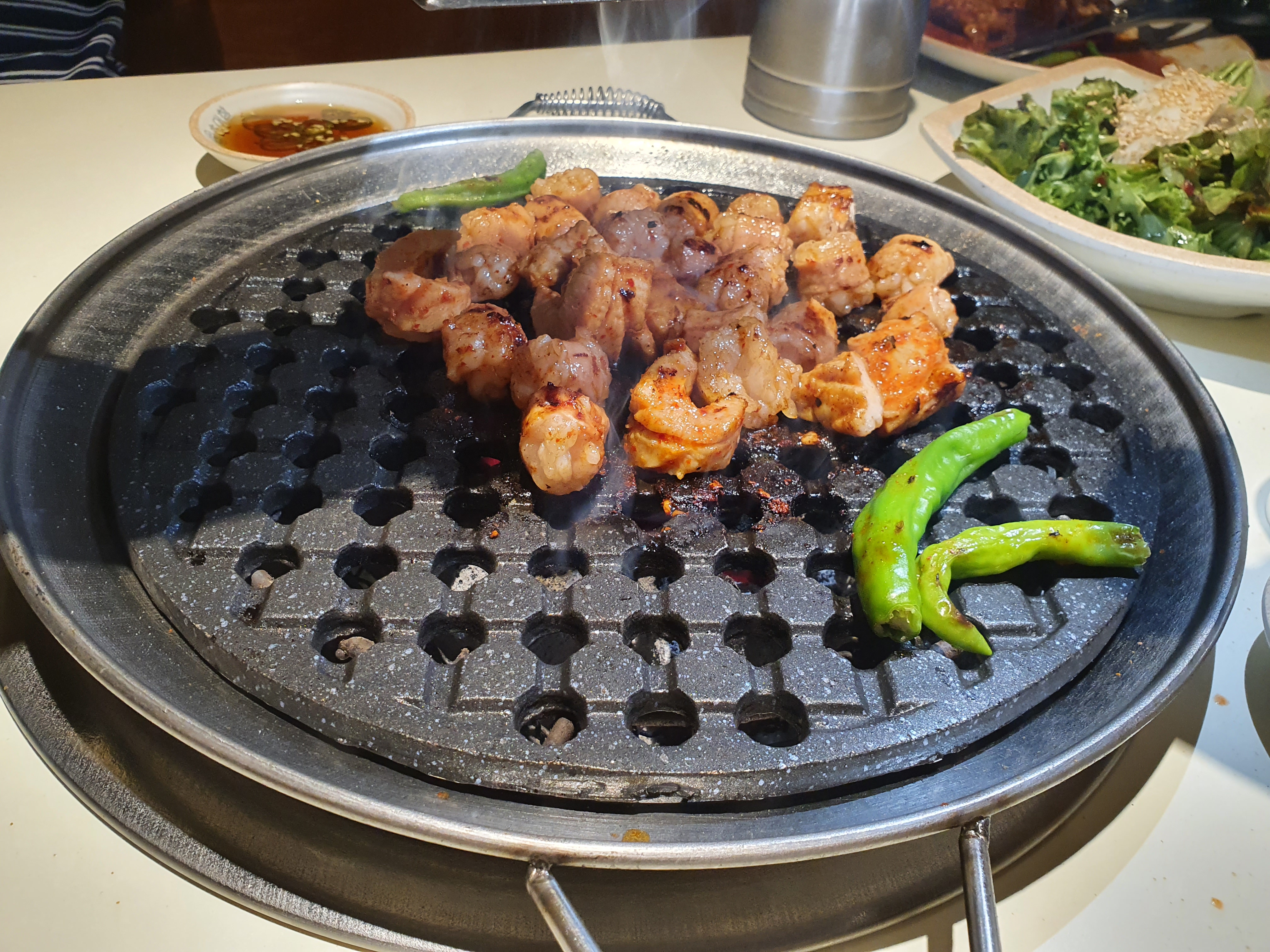 꽈리고추도 같이 구워줬는데, 약간 매워요.