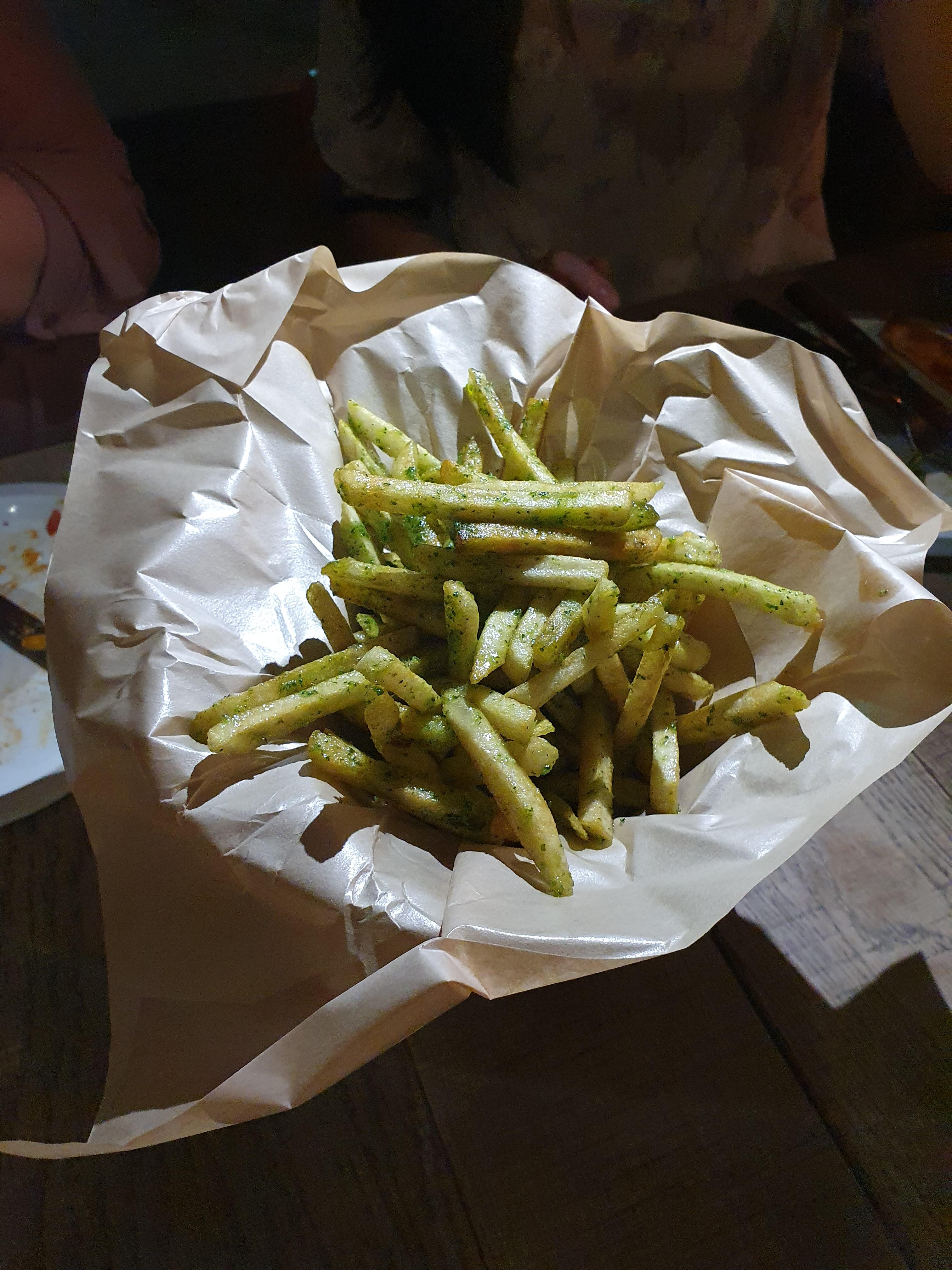 아는 맛이 가장 무섭다잖아요. 후라이드치킨은 우리가 아는 그 맛!이지만 진짜 맛있어요. 스파이시 쉬림프 피자 같은 경우는 약간의 매콤함이 있지만 매워서 먹기 힘든 정도는 아니고 느끼함을 딱 잡아주는 정도에요. 새우도 통통해서 씹는 맛이 있어요. 허브 앤 갈릭 감튀는 버터가 많이 들어가서 고소하고 바삭바삭해요. 특히나 튀기는 즉시 바로 먹으니까 더 맛있는 것 같아요.