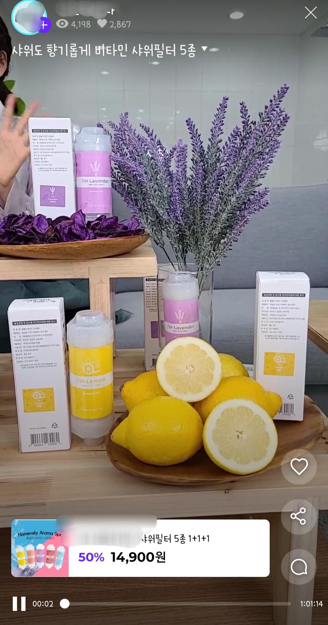 저는 샤워필터에 관심이 생겨서 클릭해봤는데요, 이 방송은 약 한시간 가량 진행이 되고 라이브를 통해 제품에 대한 많은 정보를 직접 눈으로 보면서 확인할 수 있습니다.