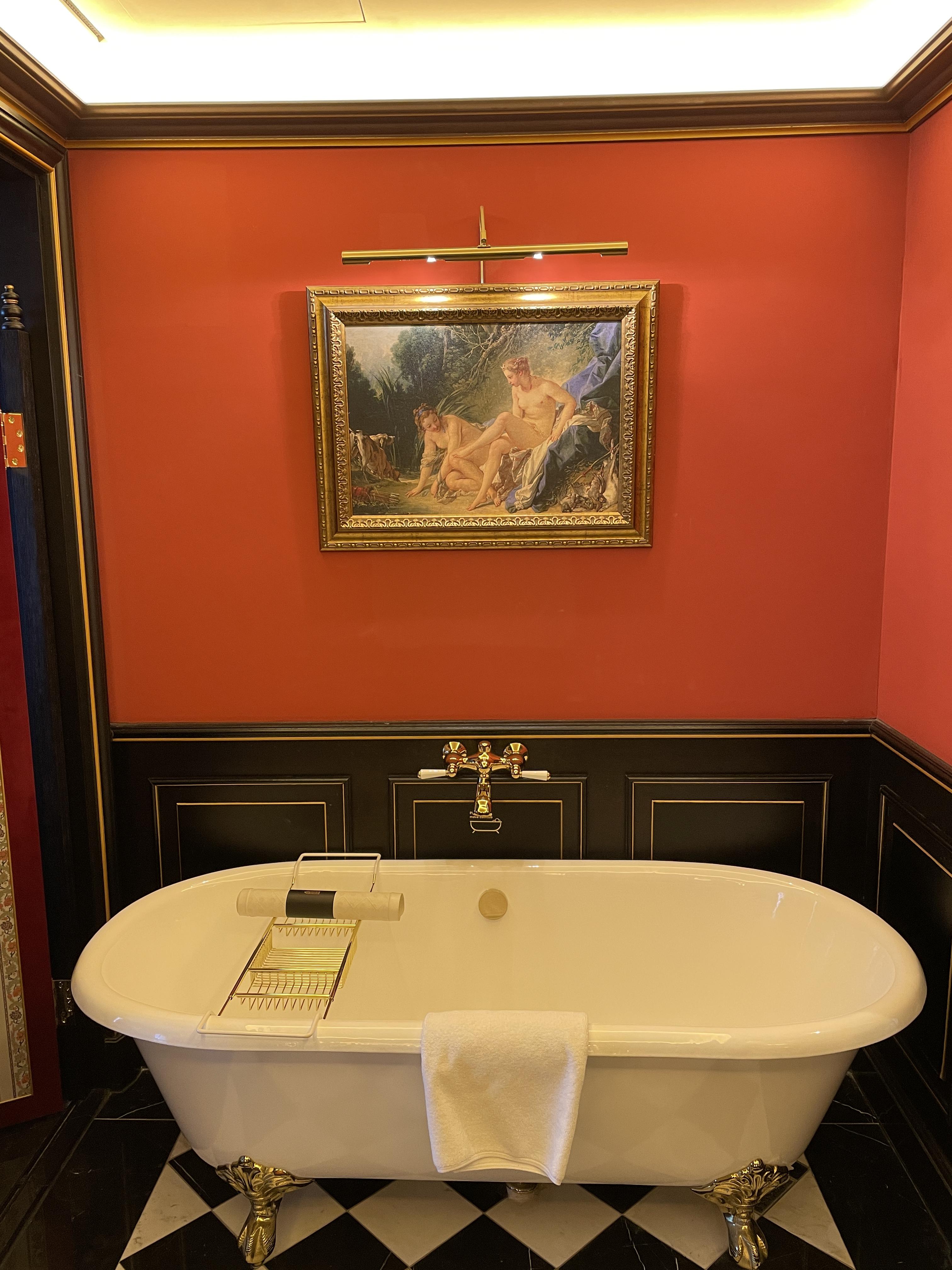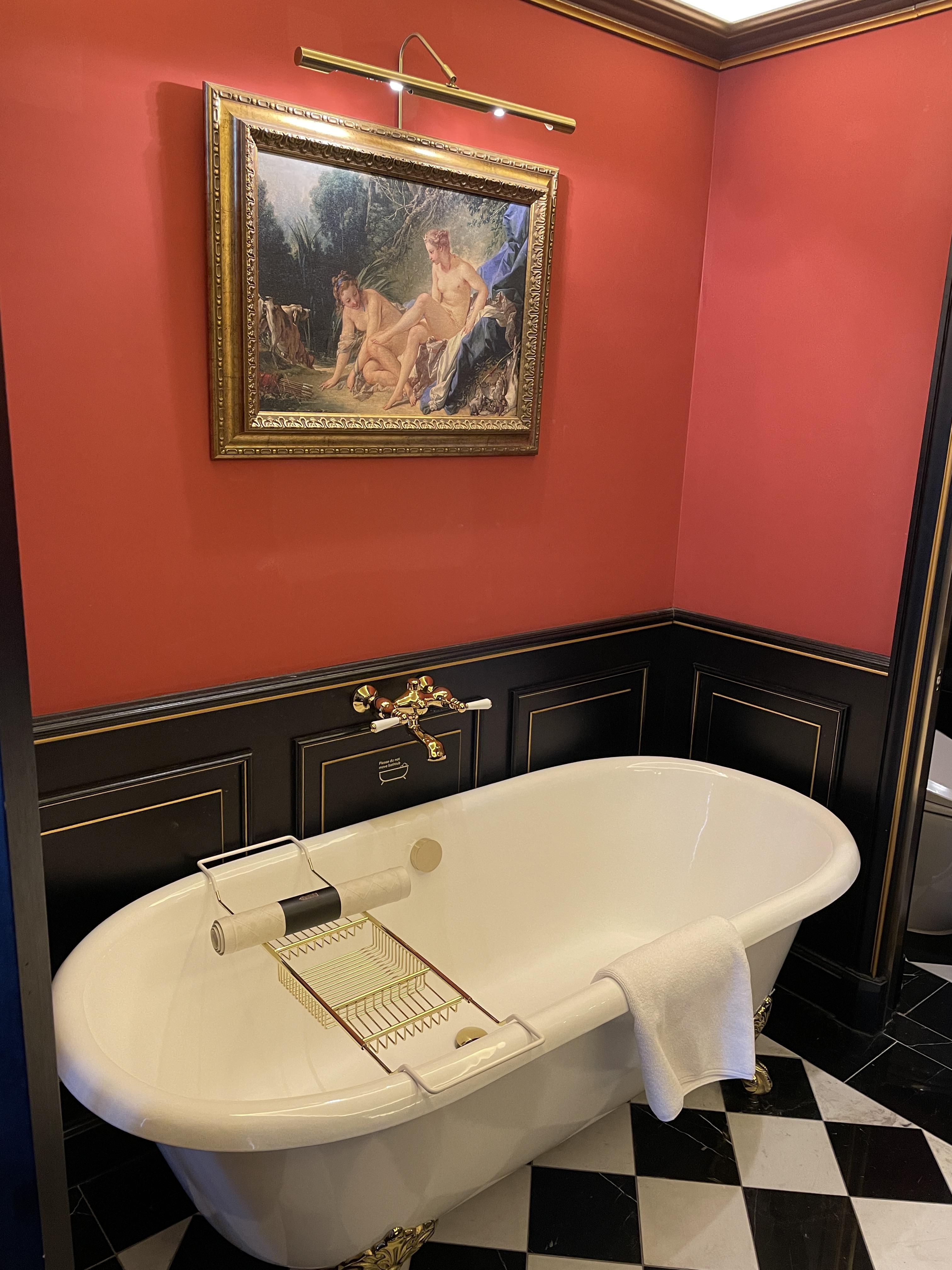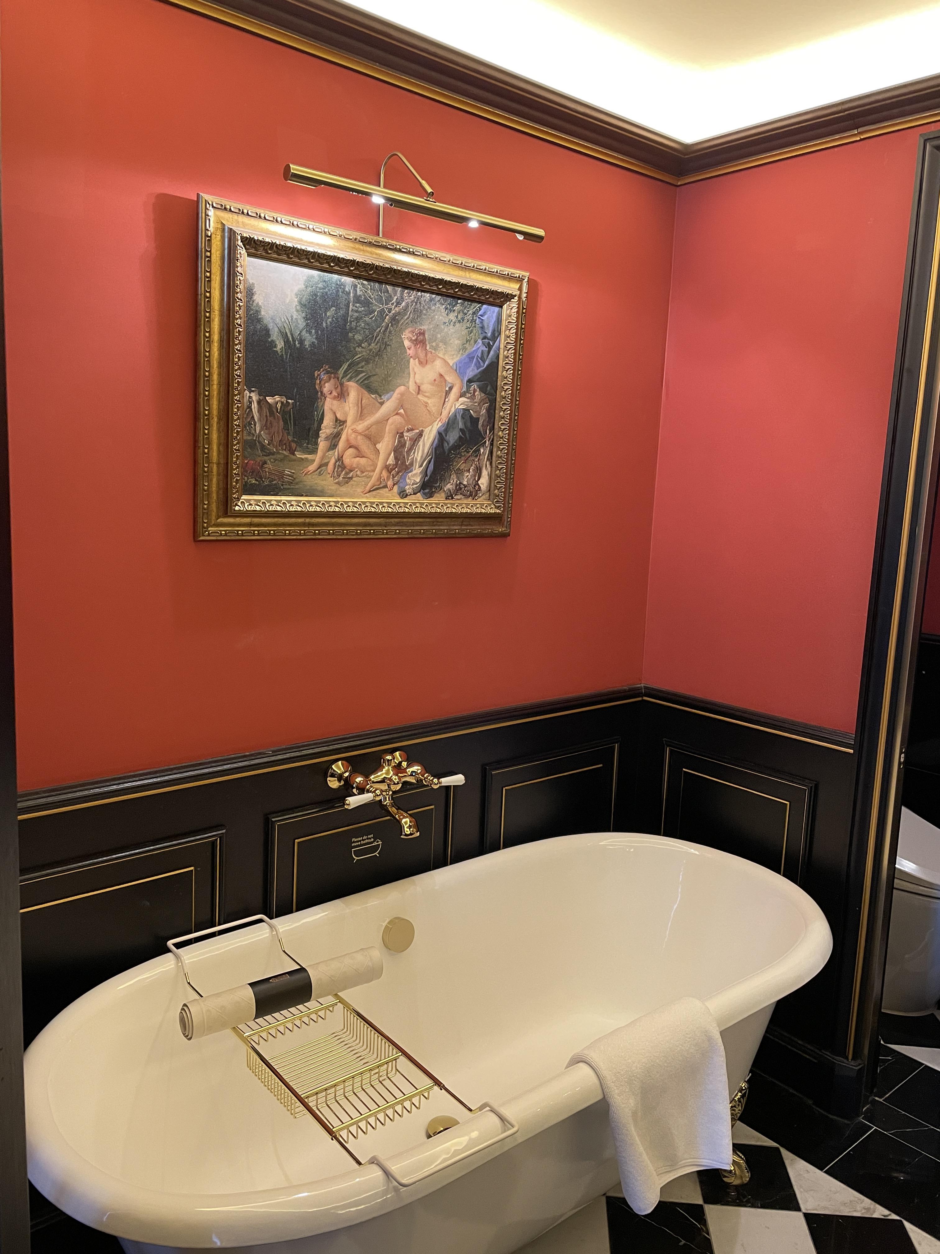 여기는 욕실입니다. 저런 병풍은 정말 브리저튼이나 마리 앙투아네트 영화에서나 보던 건데 실제로 이렇게 사용해보다니 신기했습니다. 사실 저 병풍은 안쳐도 무방하긴 하지만 화장실과 샤워부스 유리가 생각보다 많이 비쳐서 병풍을 치고 사용하는 것을 추천드립니다.