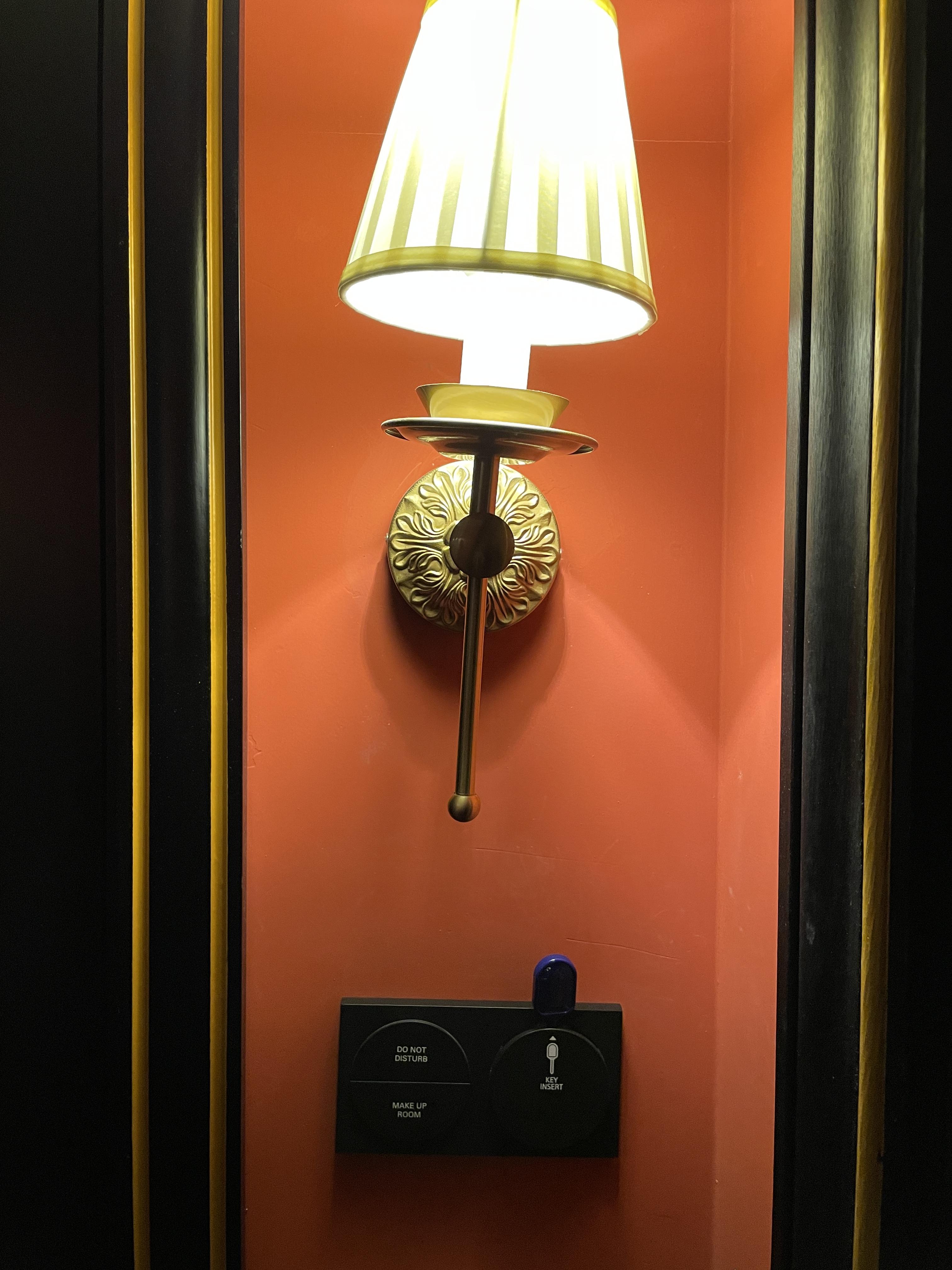 제가 스테이 한 레스케이프 호텔 아뜰리에 룸은 문을 열고 들어가면 옷장이 있고 중문을 열고 들어가야 침실이 나와요. 그만큼 사이즈가 넓은 편이죠. 객실키는 왼쪽처럼 꽂아주면 됩니다.