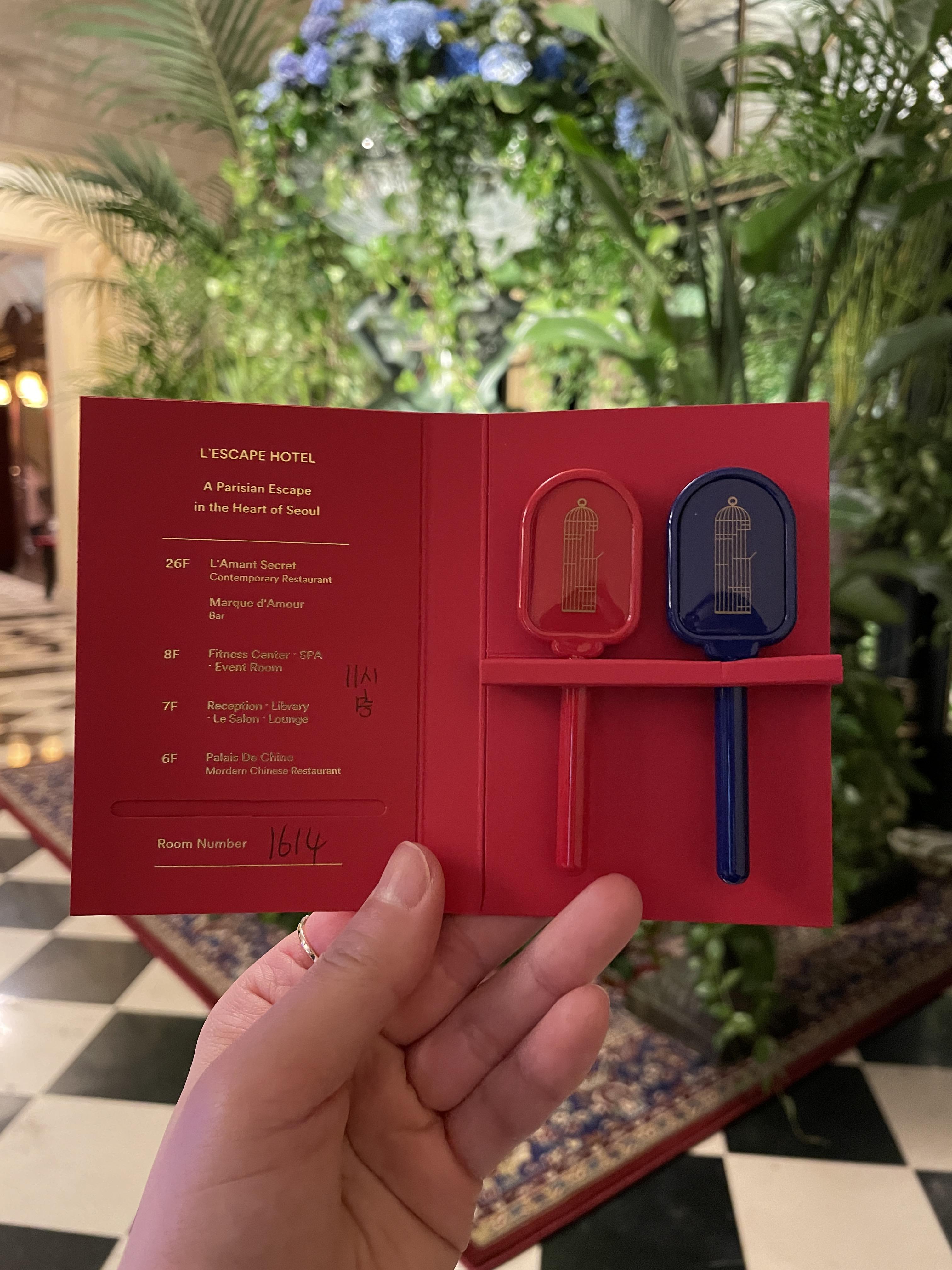 레스케이프 호텔의 객실 키입니다. 정말 수많은 호텔에 방문해보았지만 이렇게 처음부터 끝까지 감성 넘치는 호텔은 레스케이프 호텔이 처음인 것 같아요. 객실 키 모양을 어떻게 진짜 열쇠 모양으로 만들 생각을 했을까요?