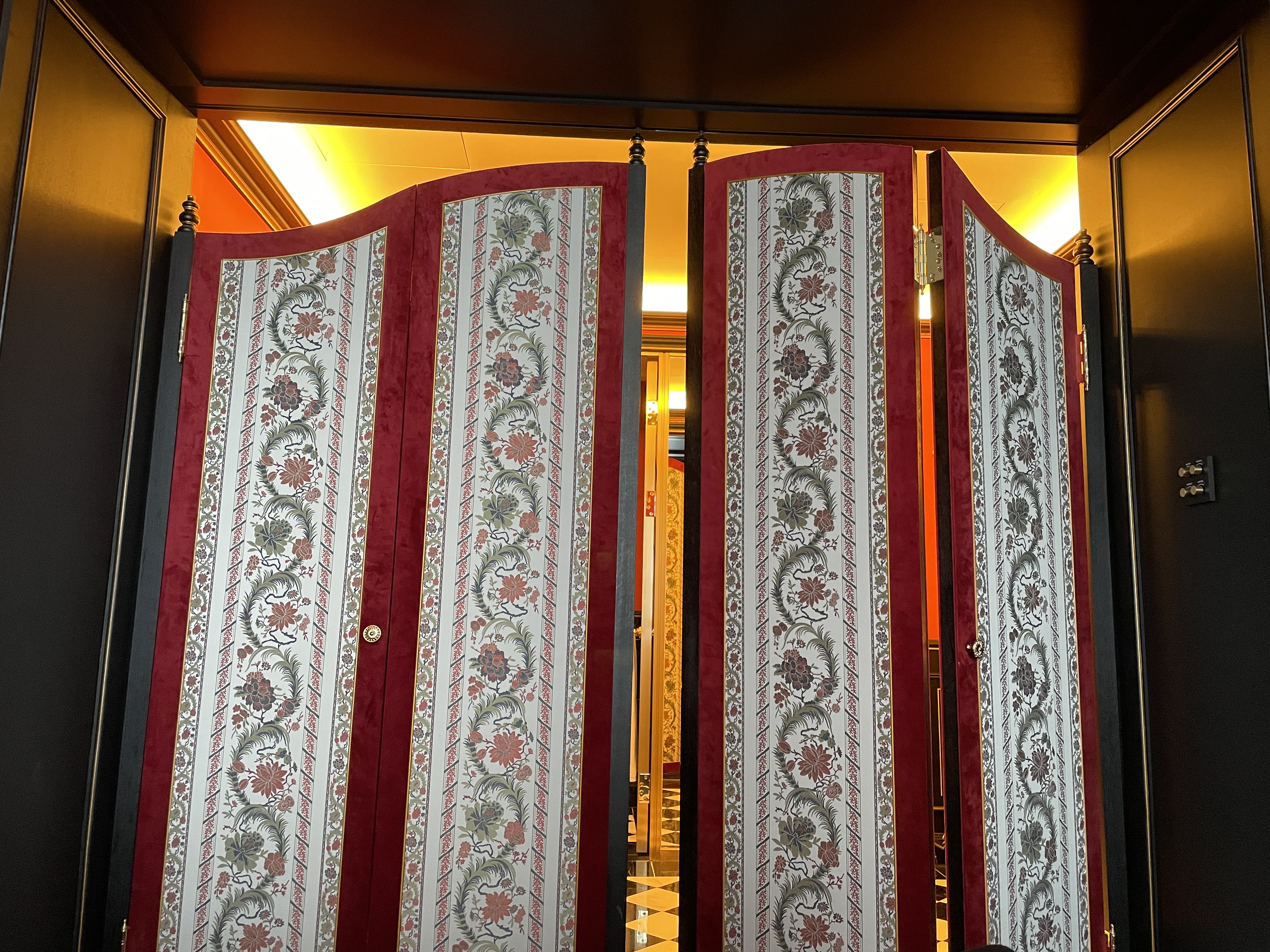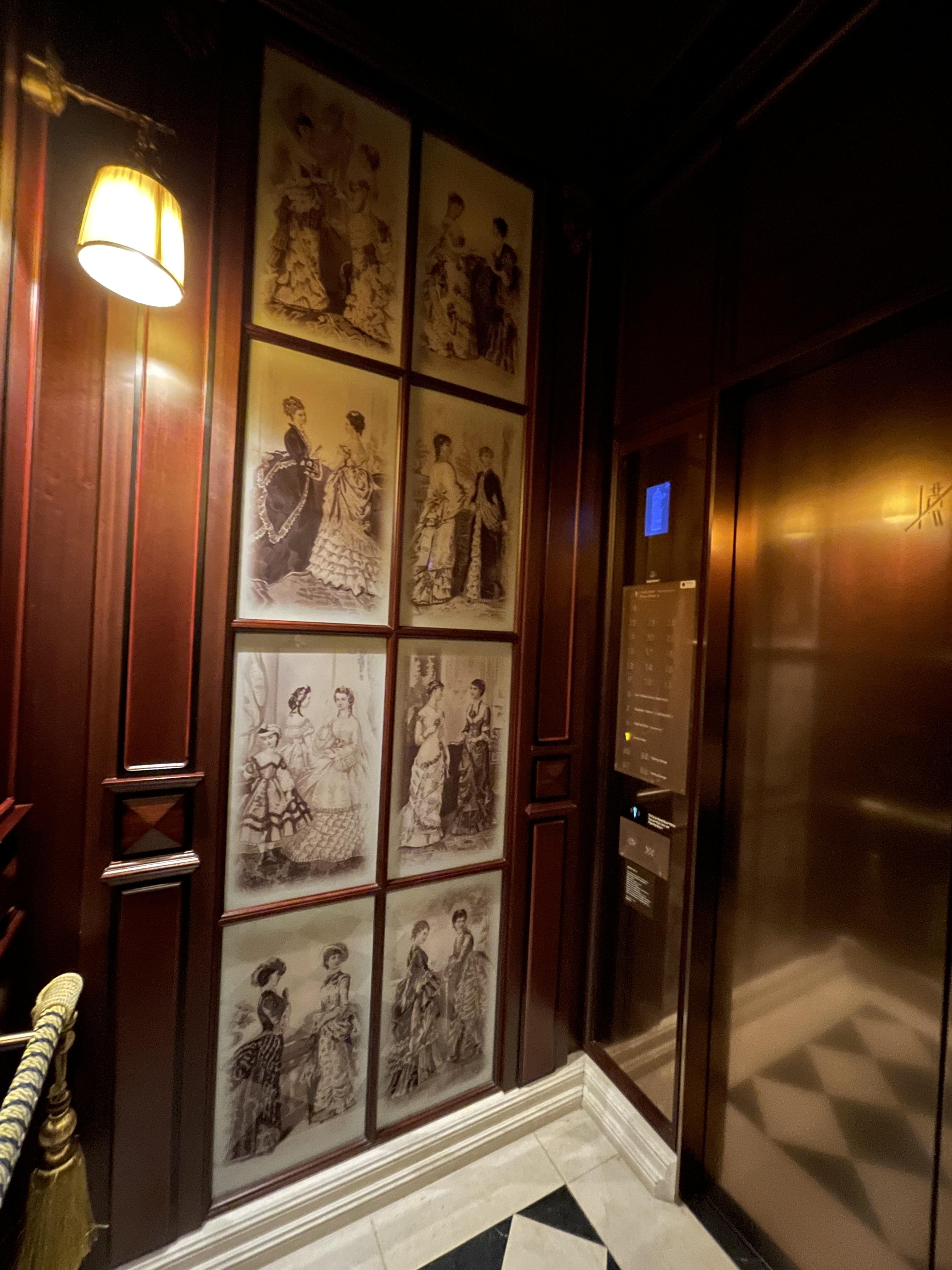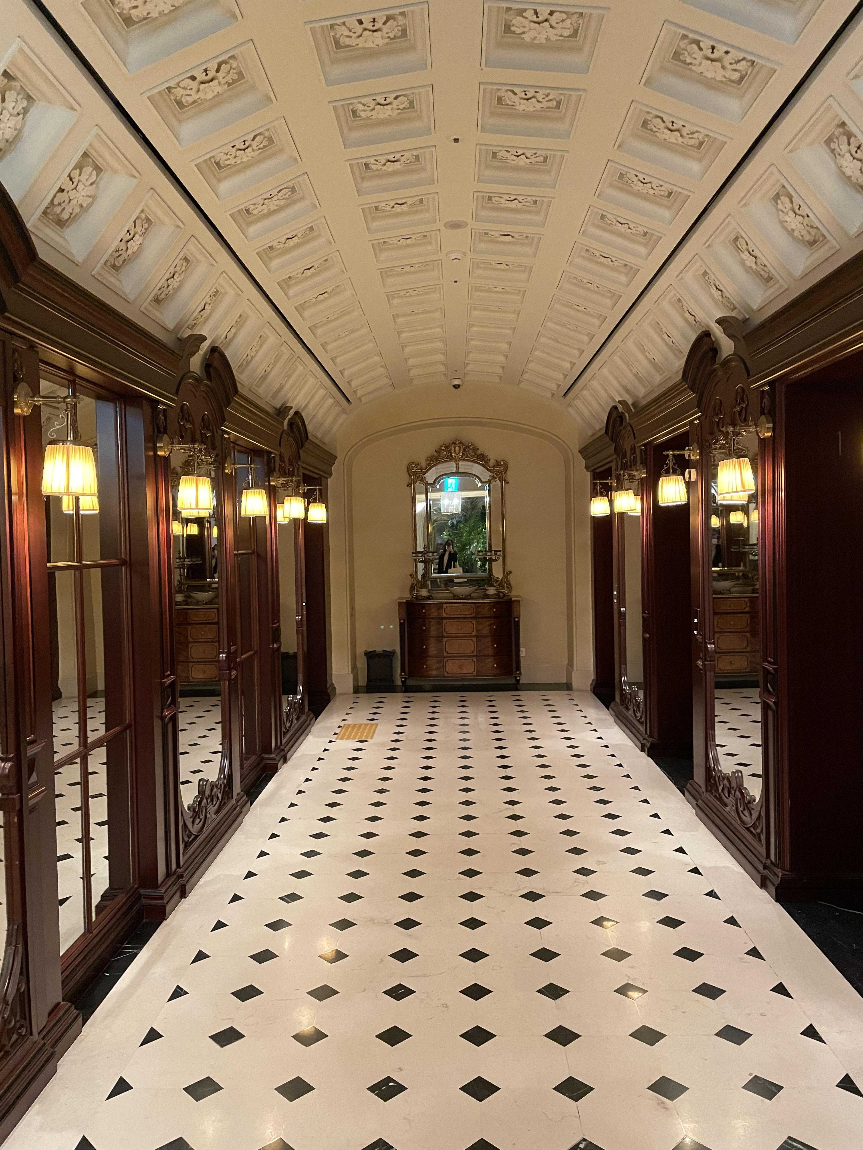 로비는 1층에 있고 7층에도 리셉션이 있어서 체크인과 체크아웃은 1층과 7층에서 모두 가능합니다. 저는 사실 지하에 주차를 했기 때문에 엘리베이터를 타고 1층으로 갔어요. 엘리베이터 내부 인테리어도 유럽 감성이 물씬 느껴집니다.