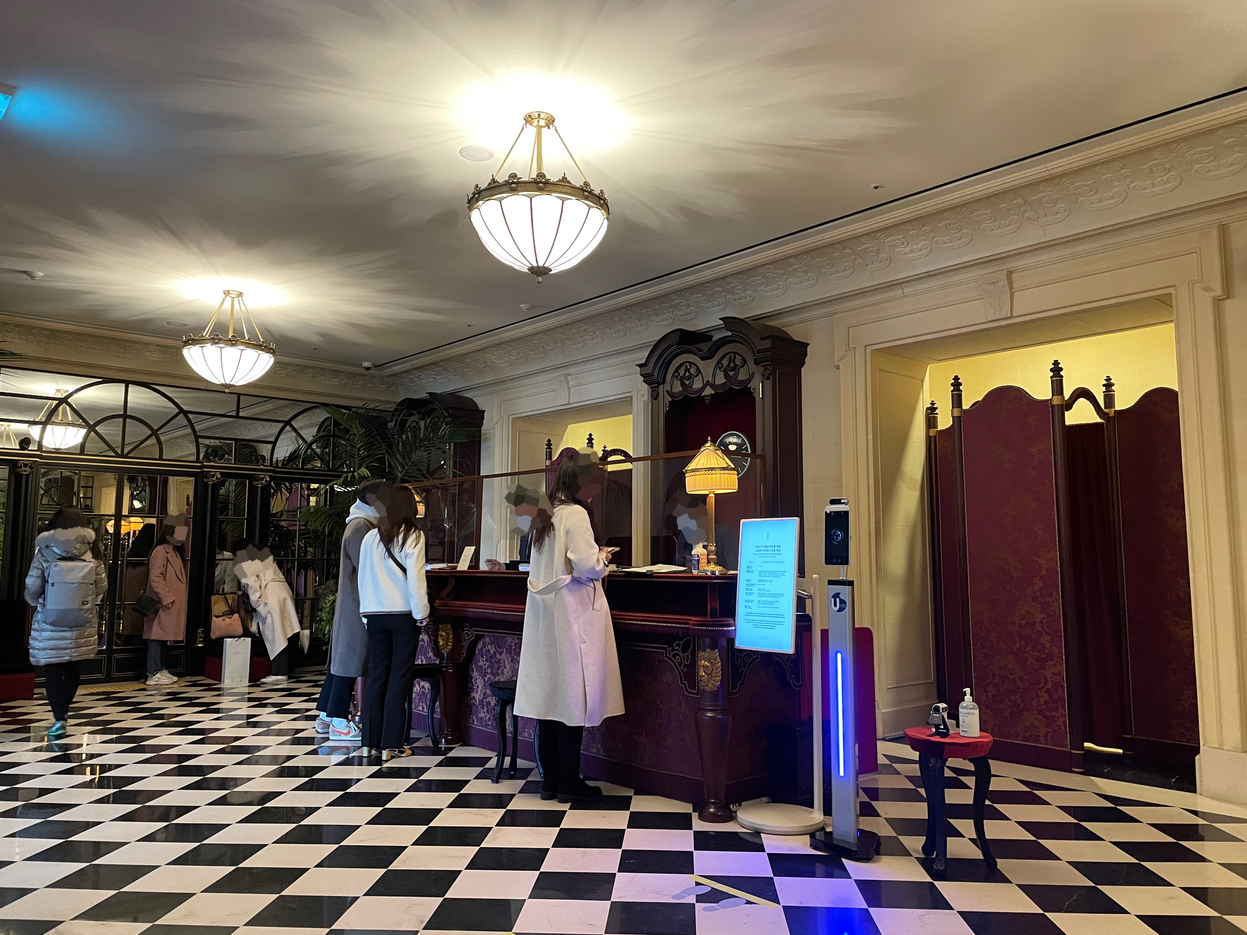 2시 반쯤 도착했는데 체크인을 정확히 3시부터 가능하다고 하여 번호를 남겨놓고 신세계 백화점에서 잠시 쇼핑을 즐기고 왔습니다. 3시가 되면 순서대로 카카오톡으로 체크인 안내 메시지를 보내주기 때문에 마냥 호텔 로비에서 기다릴 필요 없이 외출했다가 돌아오셔도 됩니다. 순번을 놓쳤어도 번호를 재발행받지 않고 바로 해주기 때문에 편리해요.