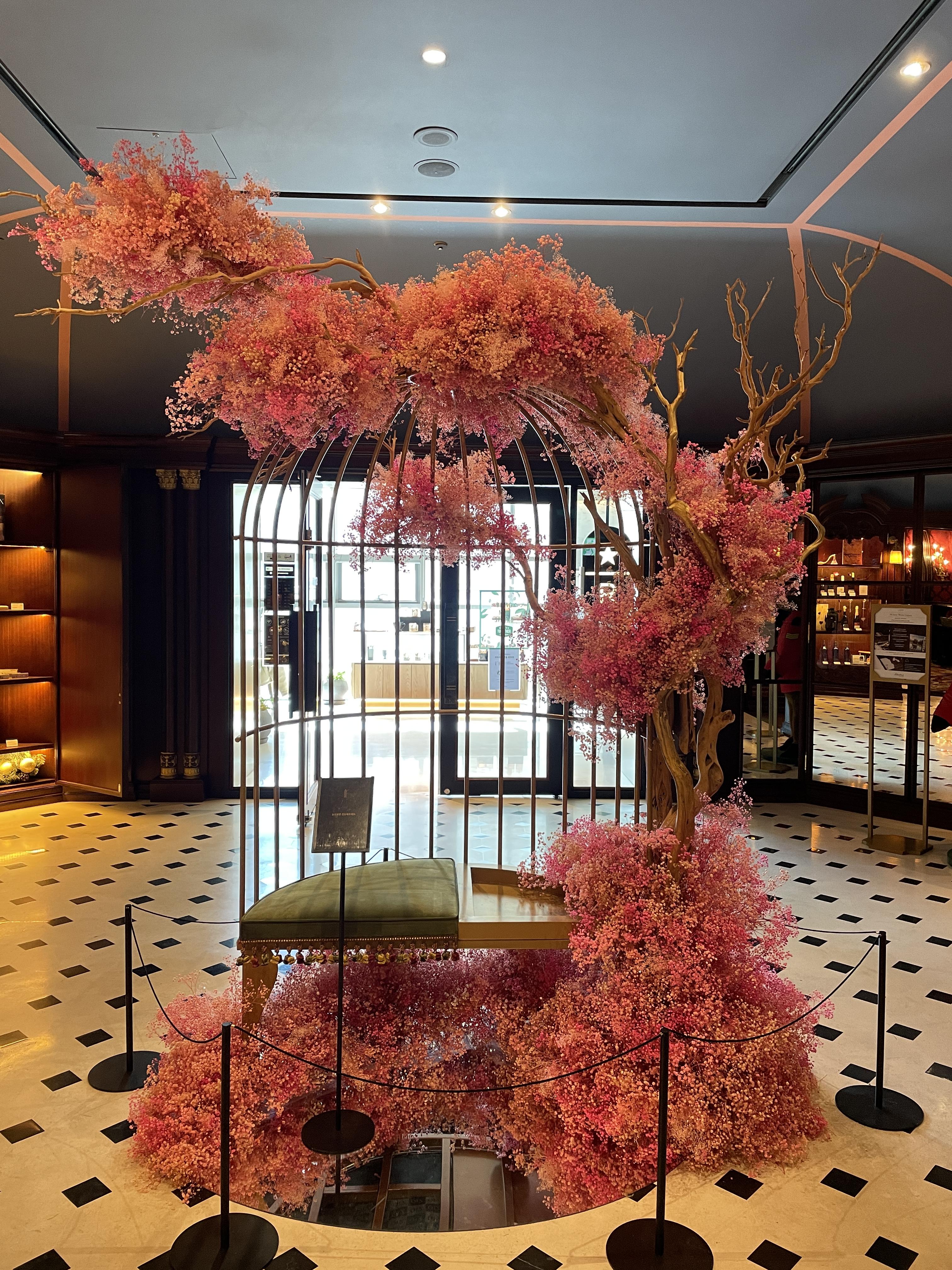 엘리베이터를 타고 1층에 내리면 왼쪽과 같은 모습이 보입니다. 호텔 전체가 유럽풍으로 꾸며져 있다고 들었는데 실제로 와보니 확실히 체감됩니다. 오른쪽 사진은 1층 로비 한편에 꾸며진 공간인데 봄이 오는 듯 예쁘게 되어 있어서 사진 한 장 남겨보았어요.
