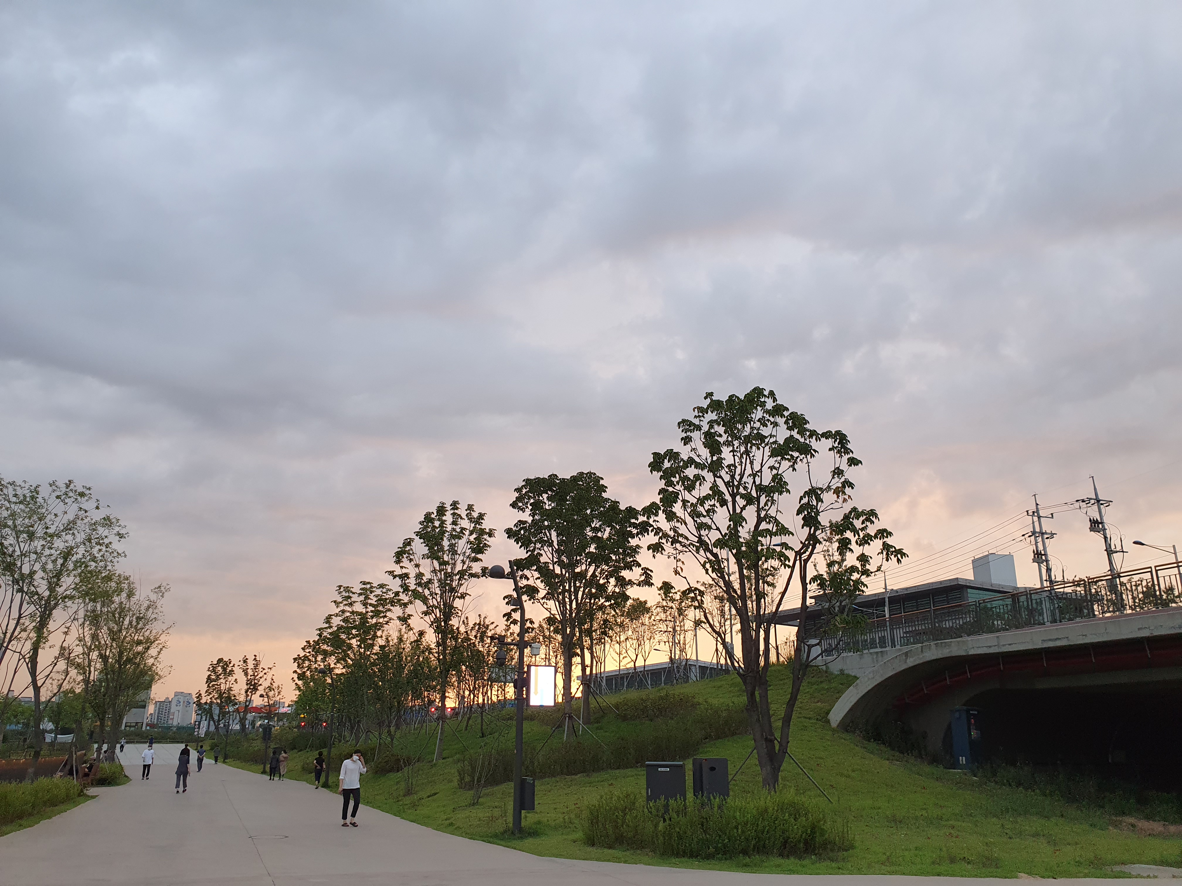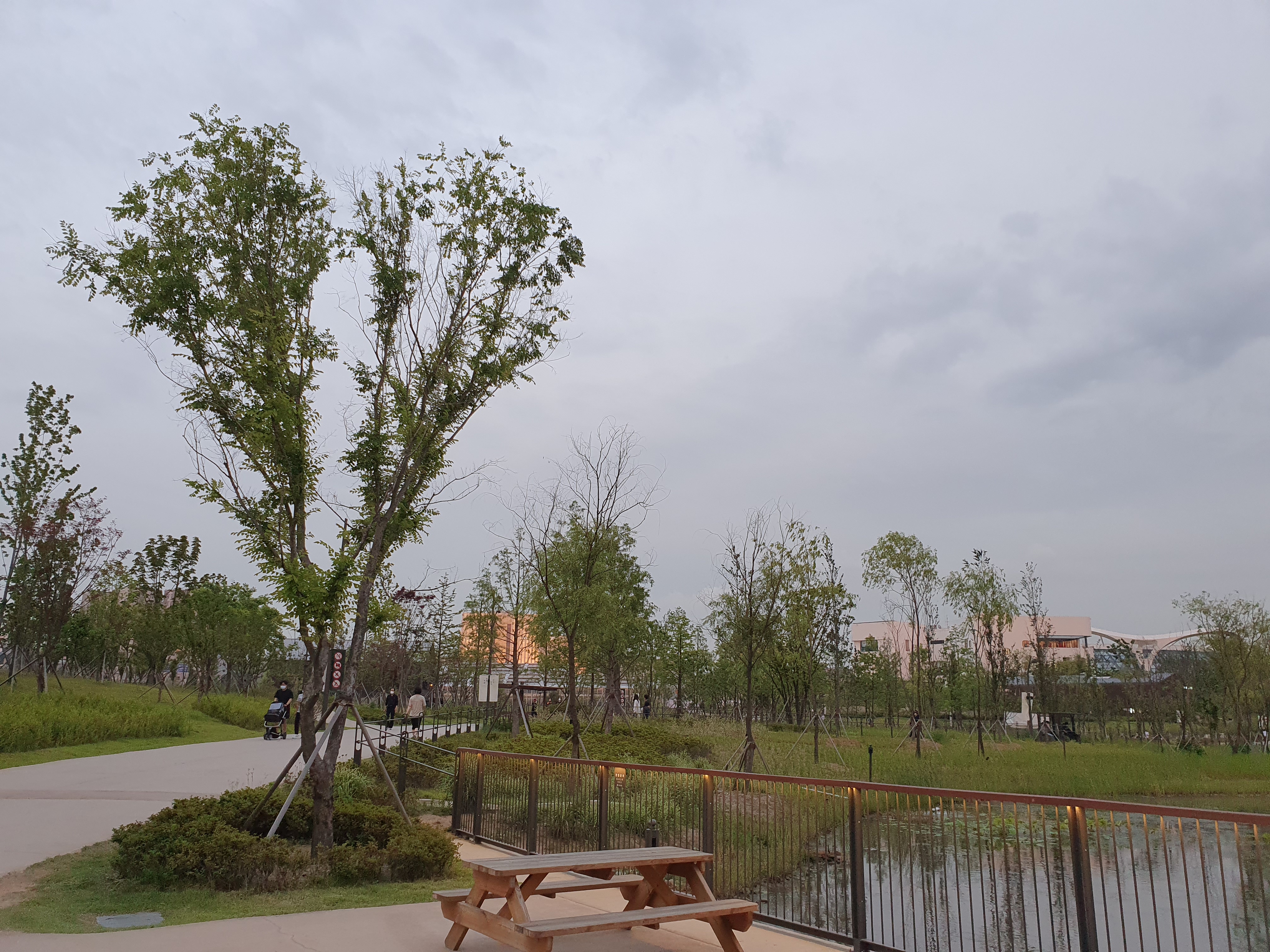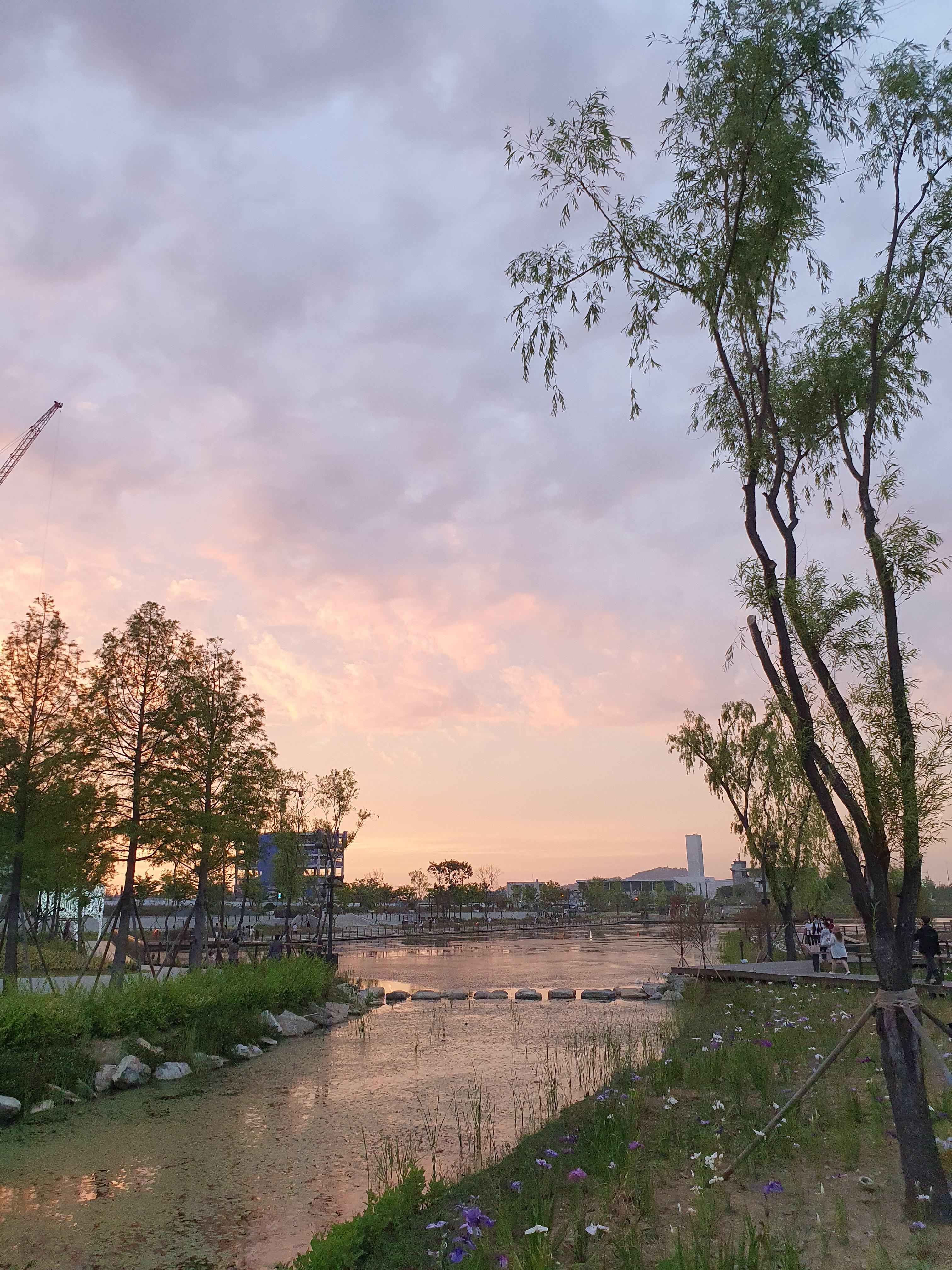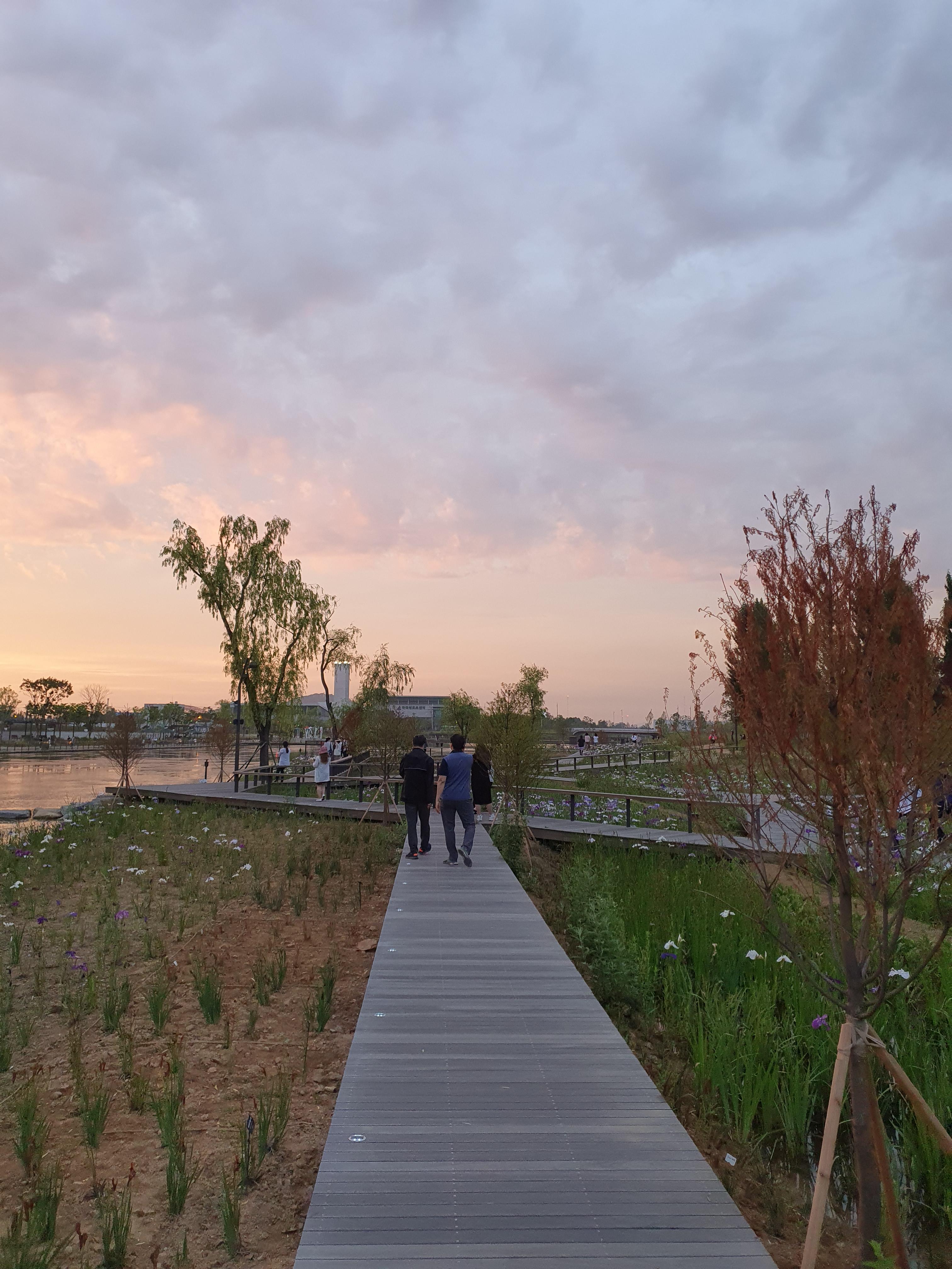 산책로가 이런식으로 구성이 되어있고 꽤 공원이 커서 한바퀴 다 도는데 시간이 좀 걸립니다. 대략 1시간 이상? 걷다가 힘들면 쉬어갈 수 있도록 중간중간에 벤치들도 많이 배치가 되어있어요. 날이 좋아서 그런지 평일임에도 불구하고 많은 사람들이 산책을 나왔어요. 역시 해가 중천에 떠있을때보다는 이렇게 해질녘에 더 시원해서 걷기 좋은 요즘입니다. 장마가 오기 전에 지금 이 시기를 즐겨보려고 해요!