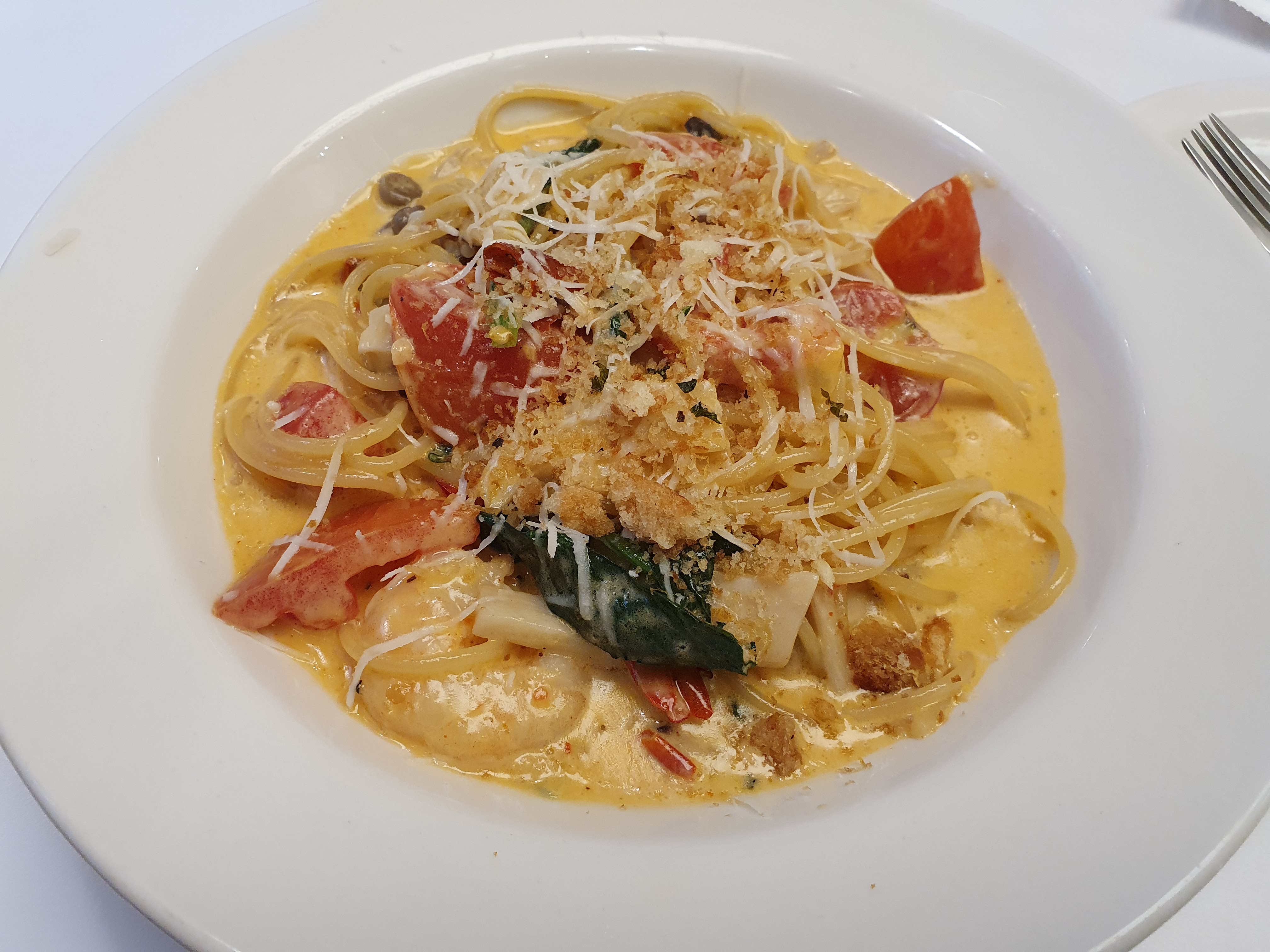 주문한 음식을 그럼 먹어볼게요! 킹덤 쉬림프 크림 파스타는 베스트라고 메뉴판에 적혀있던것처럼 진짜 맛있어요. 치즈도 듬뿍 들어가있어서 고소하고 매콤함이 느끼함을 잡아줍니다. 새우도 오동통해서 씹는맛이 있어요.
