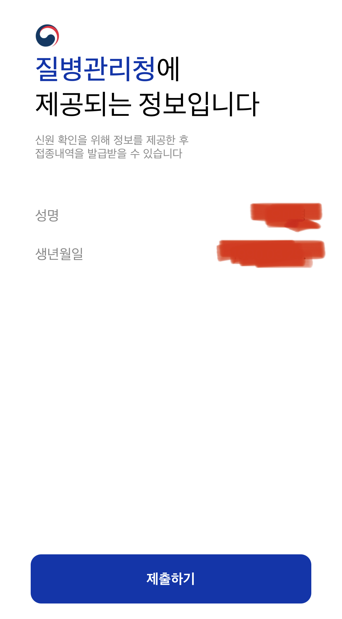 질병청에서 제공하는 COOV(쿠브)앱은 비밀번호를 누르고 들어가면 상단에 코로나19 예방접종 내역을 발급받을 수 있습니다. 신원 확인을 위해 개인정보를 입력하고 제출하면 바로 예방접종 증명서를 발급받으실 수 있습니다. 아무래도 전자증명서 사용이 불편한 어르신들께서는 종이 증명서나 예방접종 스티커를 받아두시는게 편리하지 않을까 싶습니다.