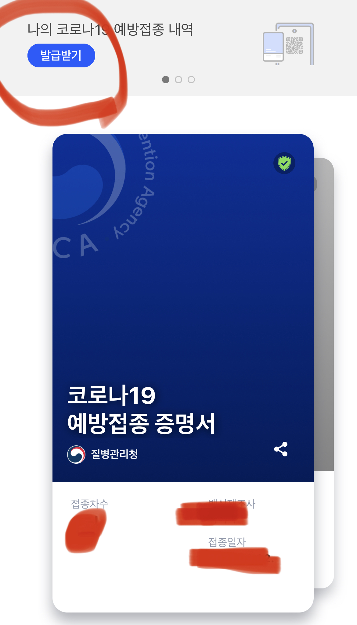 백신접종완료자는 백신접종증명서를 제시해야 하는데 주민센터나 보건소에서 발급받은 종이 증명서나 예방접종 스티커, 전자증명서로 증명하면 됩니다. 전자증명서의 경우에는 흔히 사용하고 계시는 질병관리청에서 만든 쿠브(COOV)앱, 네이버, 카카오, PASS 앱을 활용할 수 있습니다.