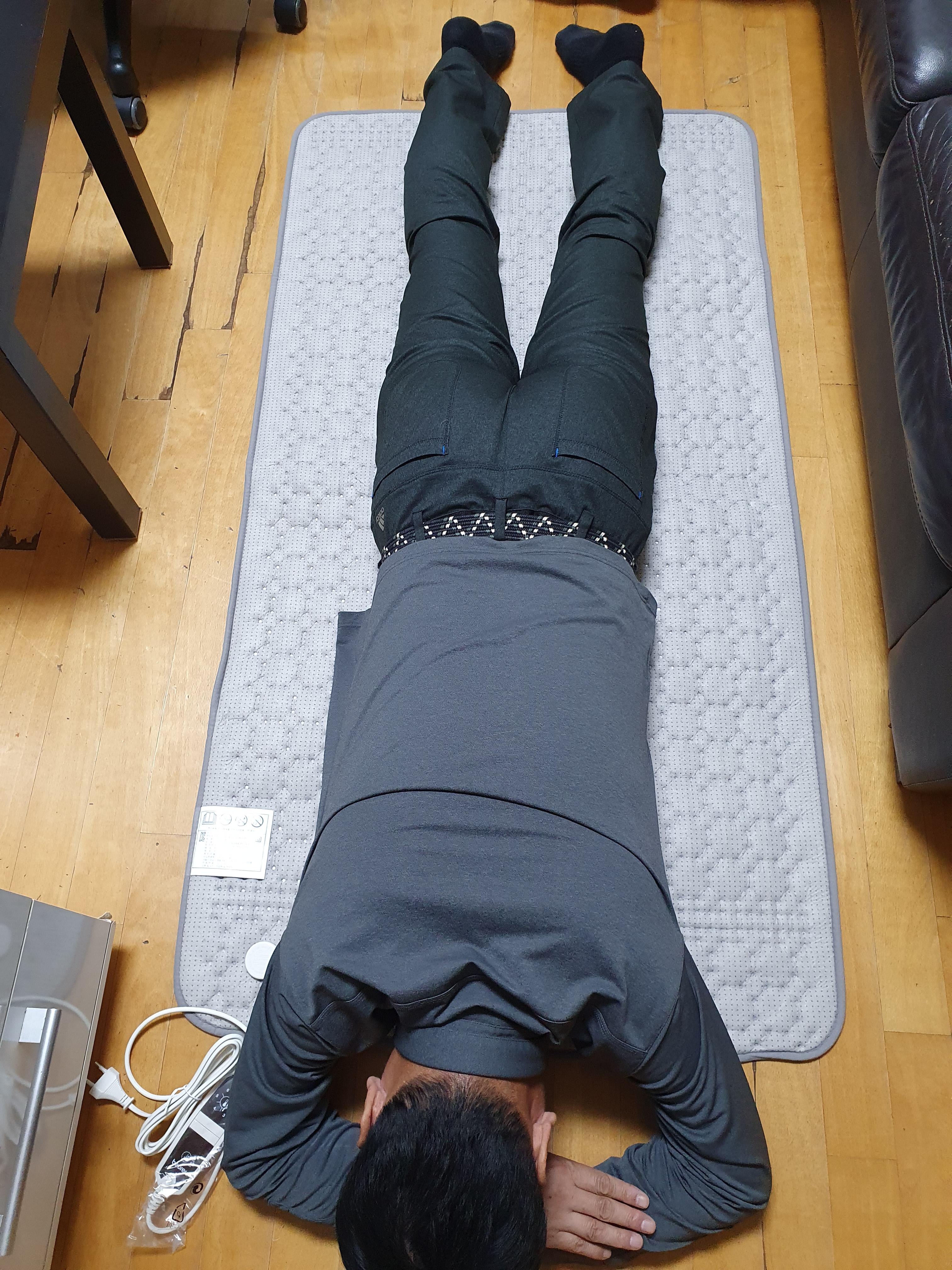 저희 아부지 키가 180cm인데 전기요가 상당히 짧아보입니다. 하지만 걱정마세요! 보이로 전기요는 어깨부터 대고 사용하는거래요. 머리쪽에는 까는게 아니라서 성인 남성분들도 사용가능해요. 하지만 키가 더 크신분들은 발이 시려울듯합니다ㅜㅜ