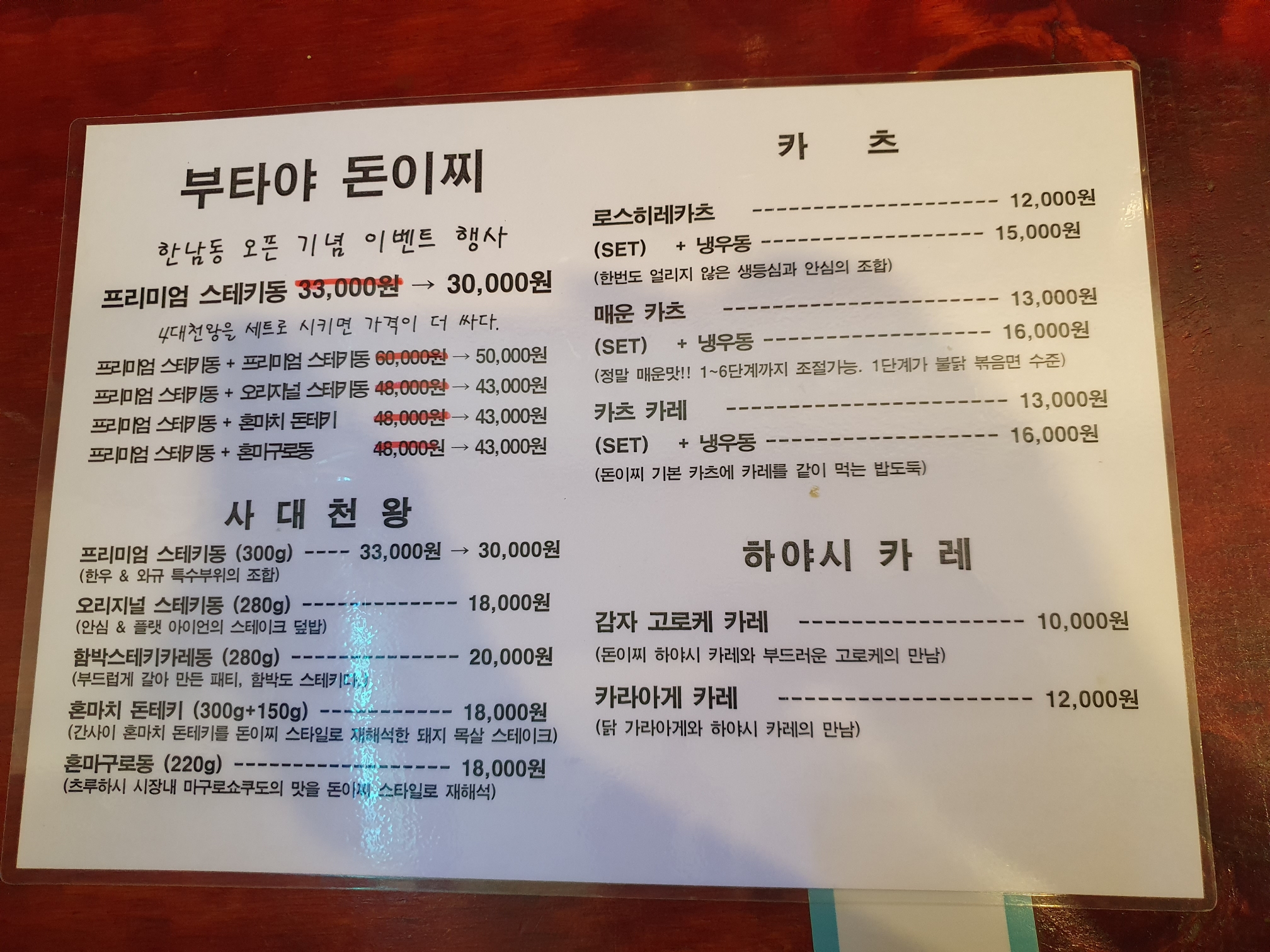워~ 장사가 잘돼서 한남동에도 오픈을 했나봐요. 오픈기념행사를 합니다. 저는 여기 처음 와봐서 오리지널 스테키동을 시키고 친구 두명도 같은 메뉴를 시켰는데 한정메뉴라 한팀에 한 개 밖에 못시킨다고 하더라구요.
