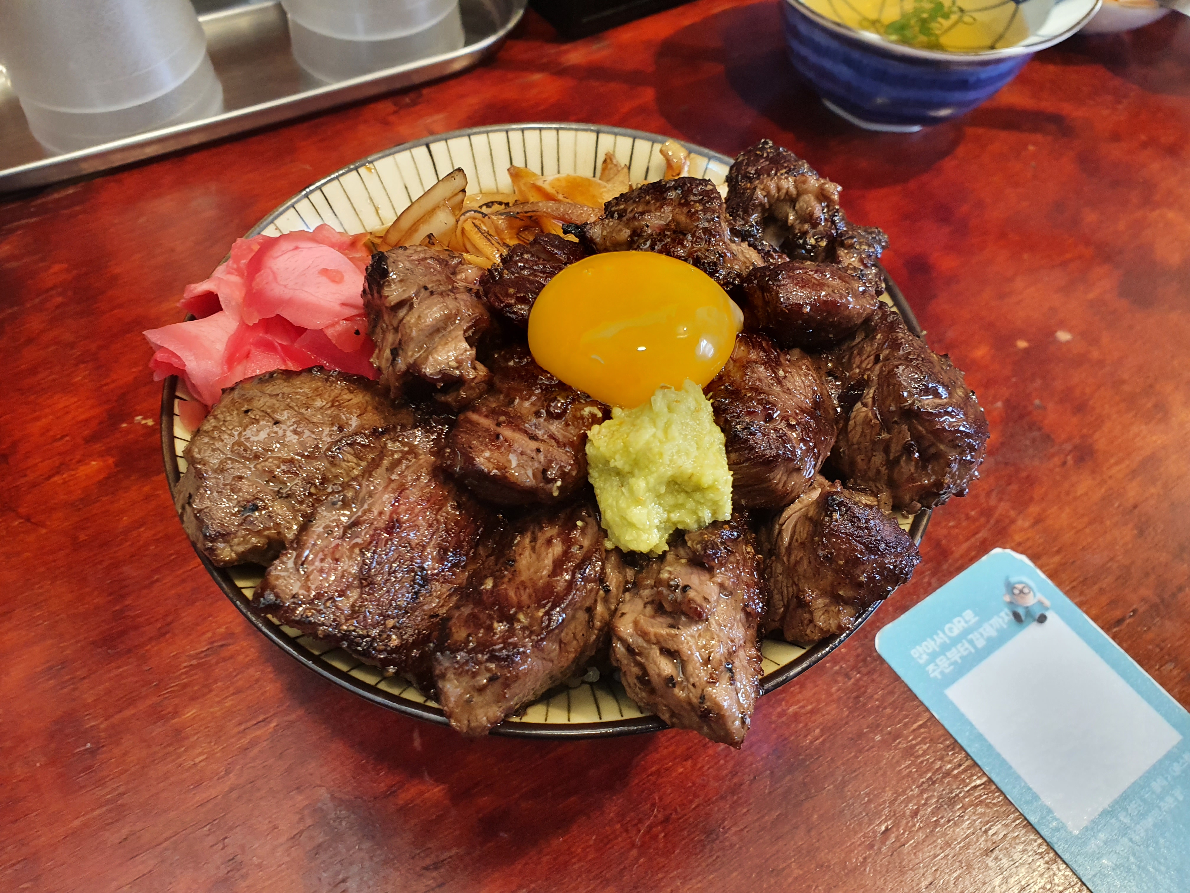 다행히 두 개까지 주문받아주신다고 해서 프리미엄 스테키동+오리지널스테키동 세트 하나에 오리지널 스테키동을 추가했어요.