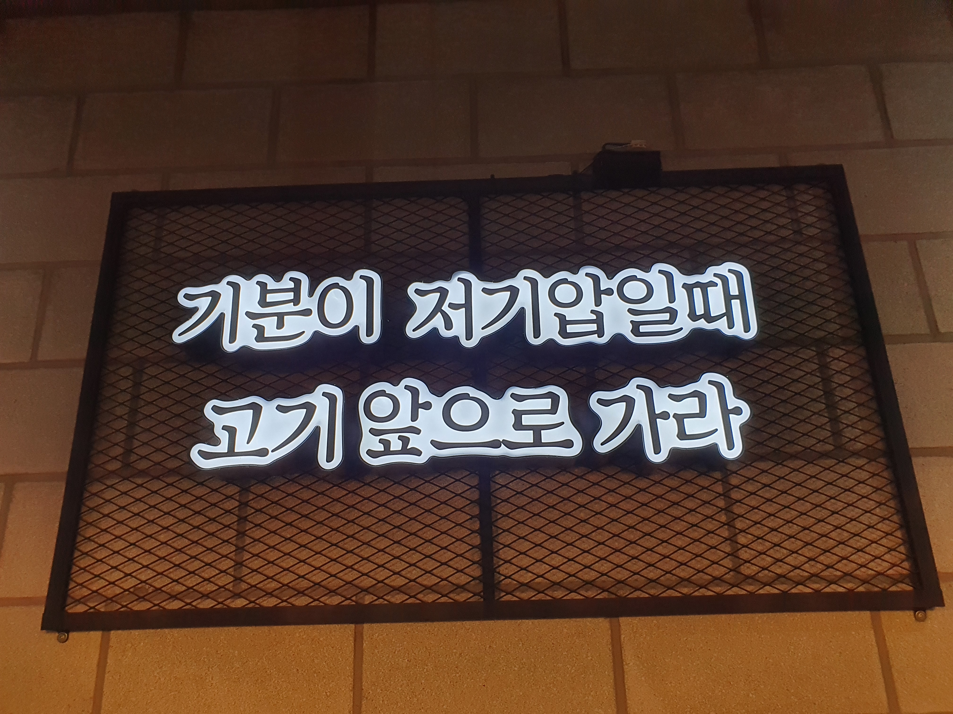 식당 곳곳에 고기관련 명언(?)이 있었는데, "인생은 고기서 고기다!", "기분이 저기압일때 고기 앞으로 가라" 등등 뼈 때리는 말들로 가득합니다. 저는 기분이 저기압은 아니었지만 날씨가 저기압이었으므로 고기앞으로...