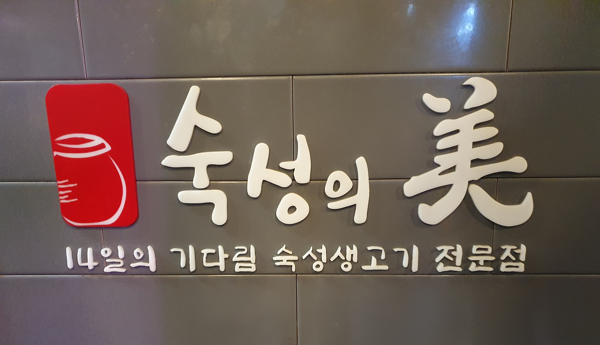 식당이름은 "숙성의 미 마곡나루점"이구요, 상호명을 보아하니아마도 숙성된 고기를 파는 것 같아요!