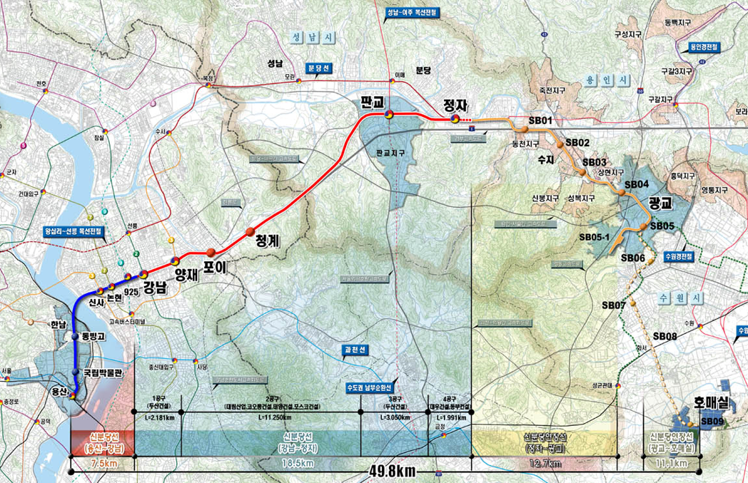 신분당선 연장 예정 노선