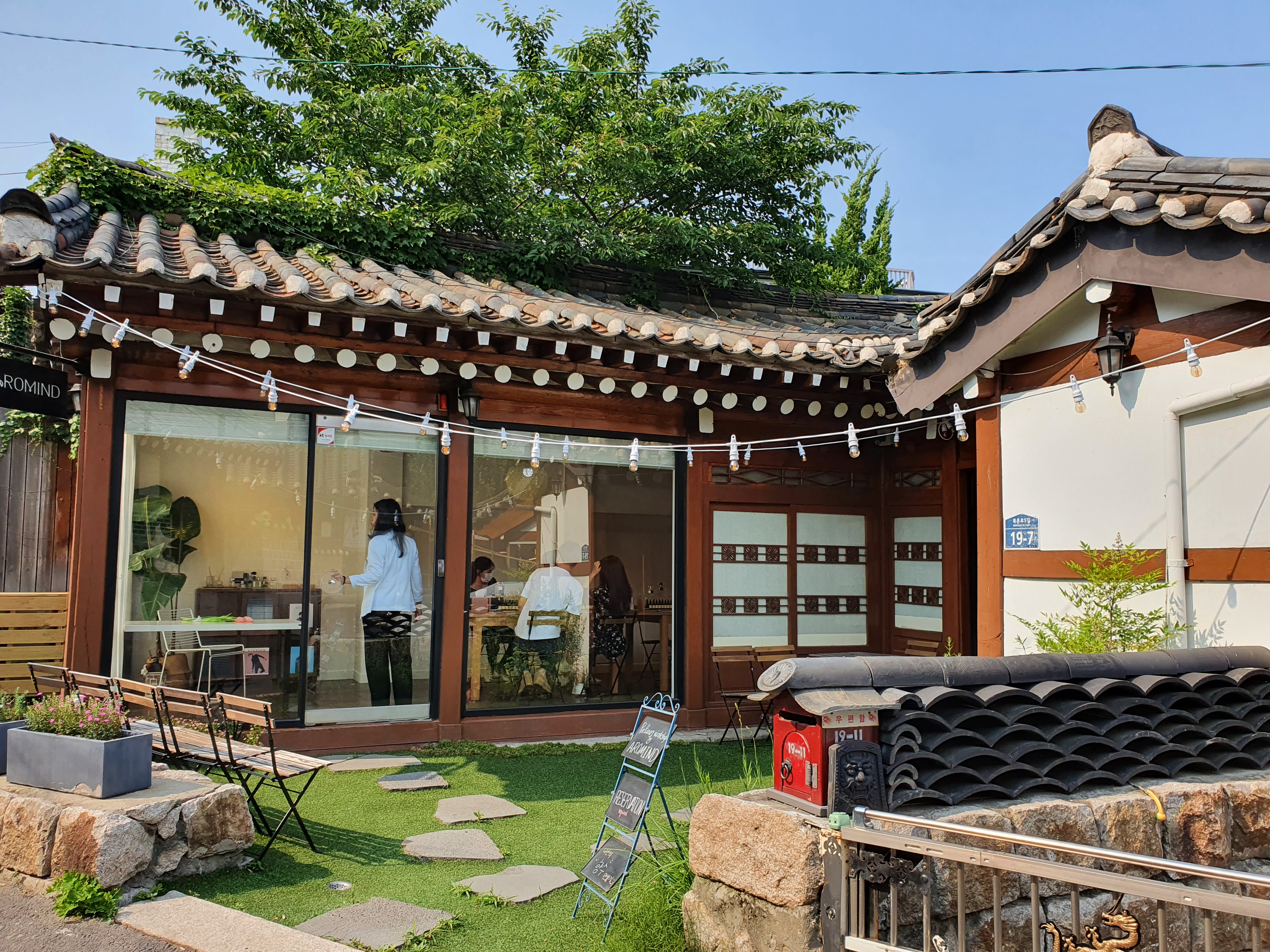 골목으로 꺾어서 들어가면 예쁜 한옥집이 나와요. 여기가 바로 아로마인드, 향수공방입니다!