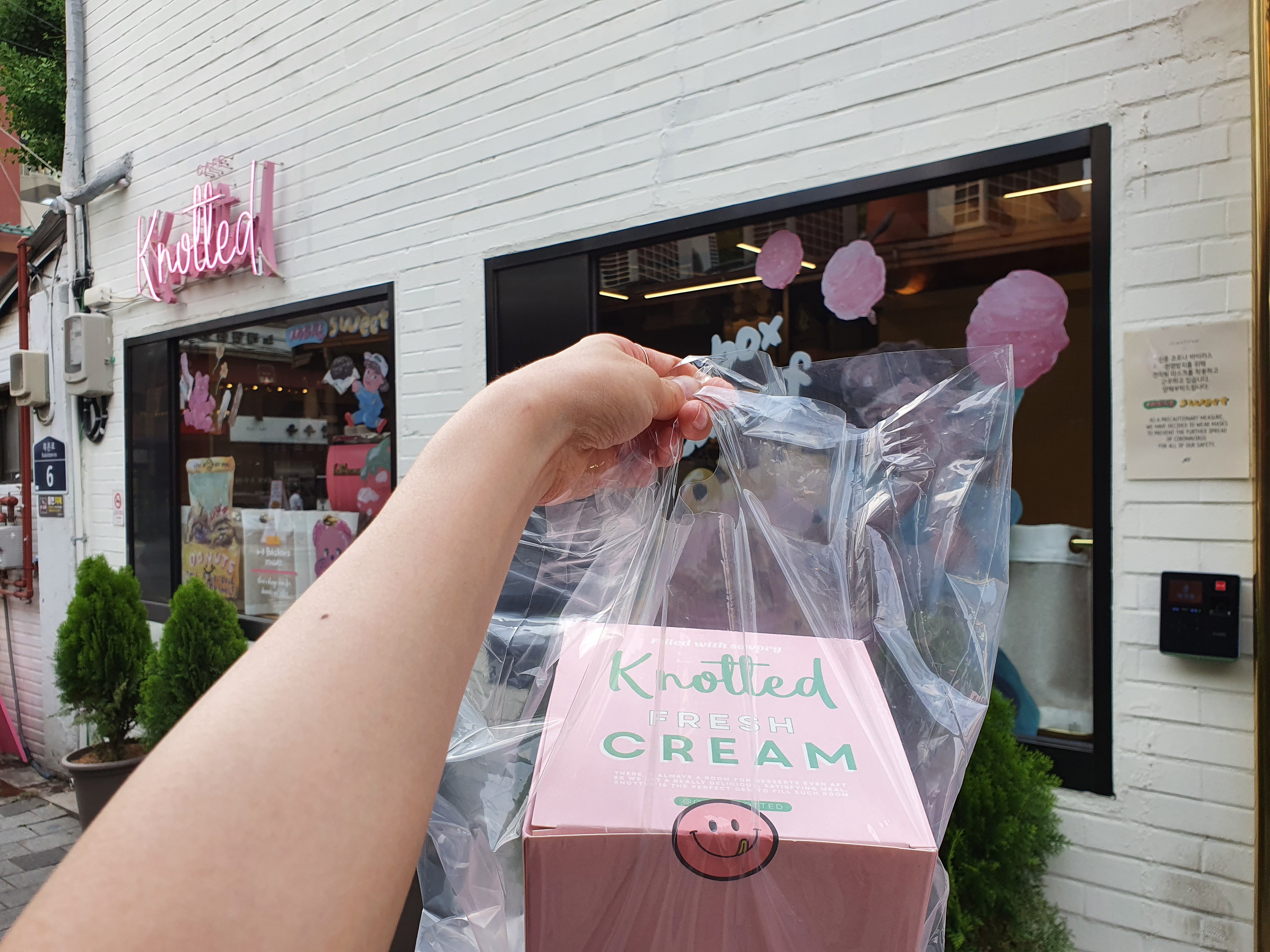 저는 집에 가야하니까 자리에 앉지 않고 포장해서 얼른 나왔어요. 포장박스도 굉장히 귀여워요. 핑크색 박스에 넣어서 스마일 스티커를 붙여주네요😋
