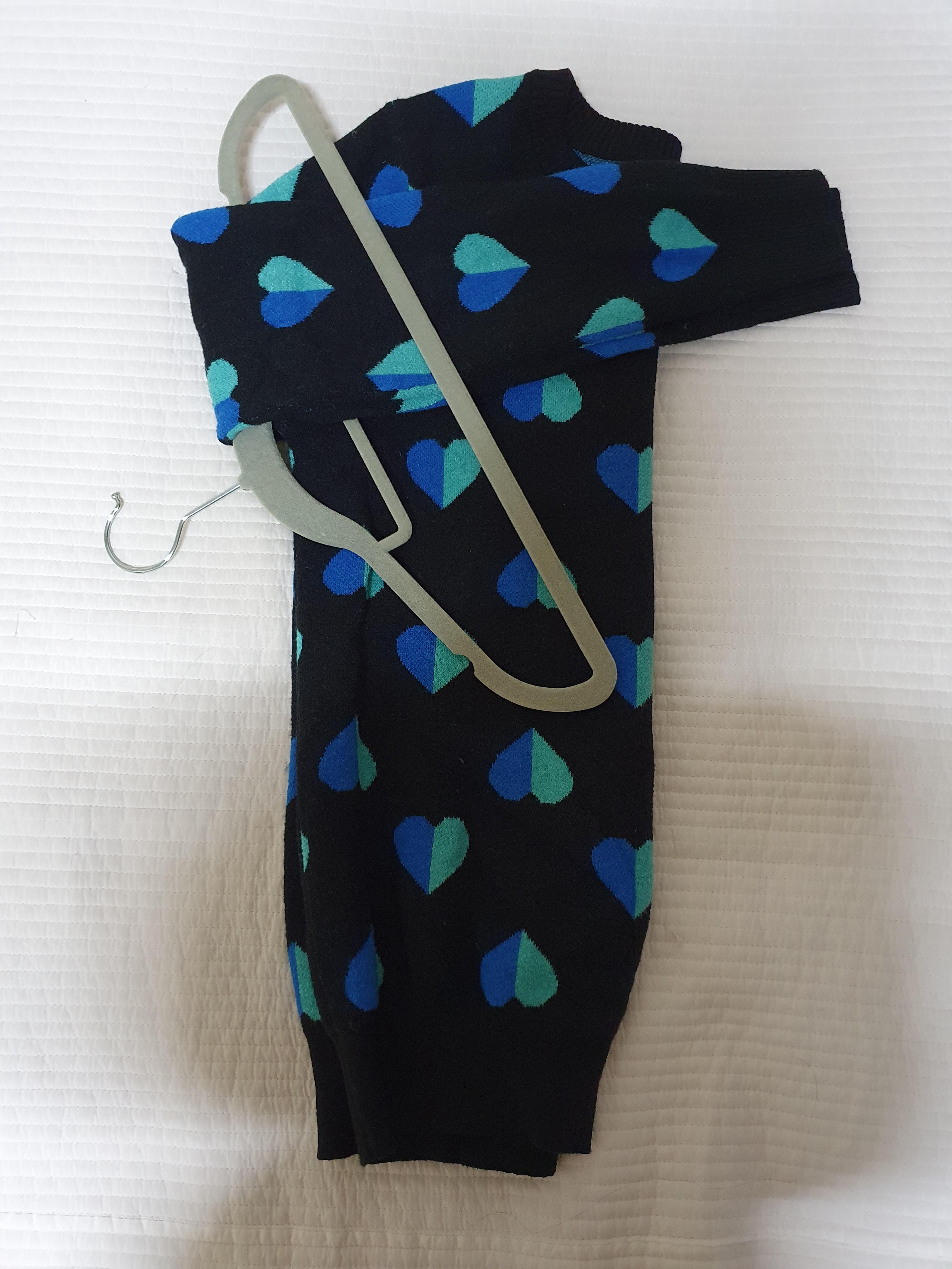 끝까지 놓치지 않고 잘하셨죠? 이게 끝이에요. 어렵지 않죠? 이렇게 니트를 옷걸이에 걸어두면 무게 때문에 아래로 쳐지지 않고 니트를 원형 그대로 보관하실 수 있습니다.