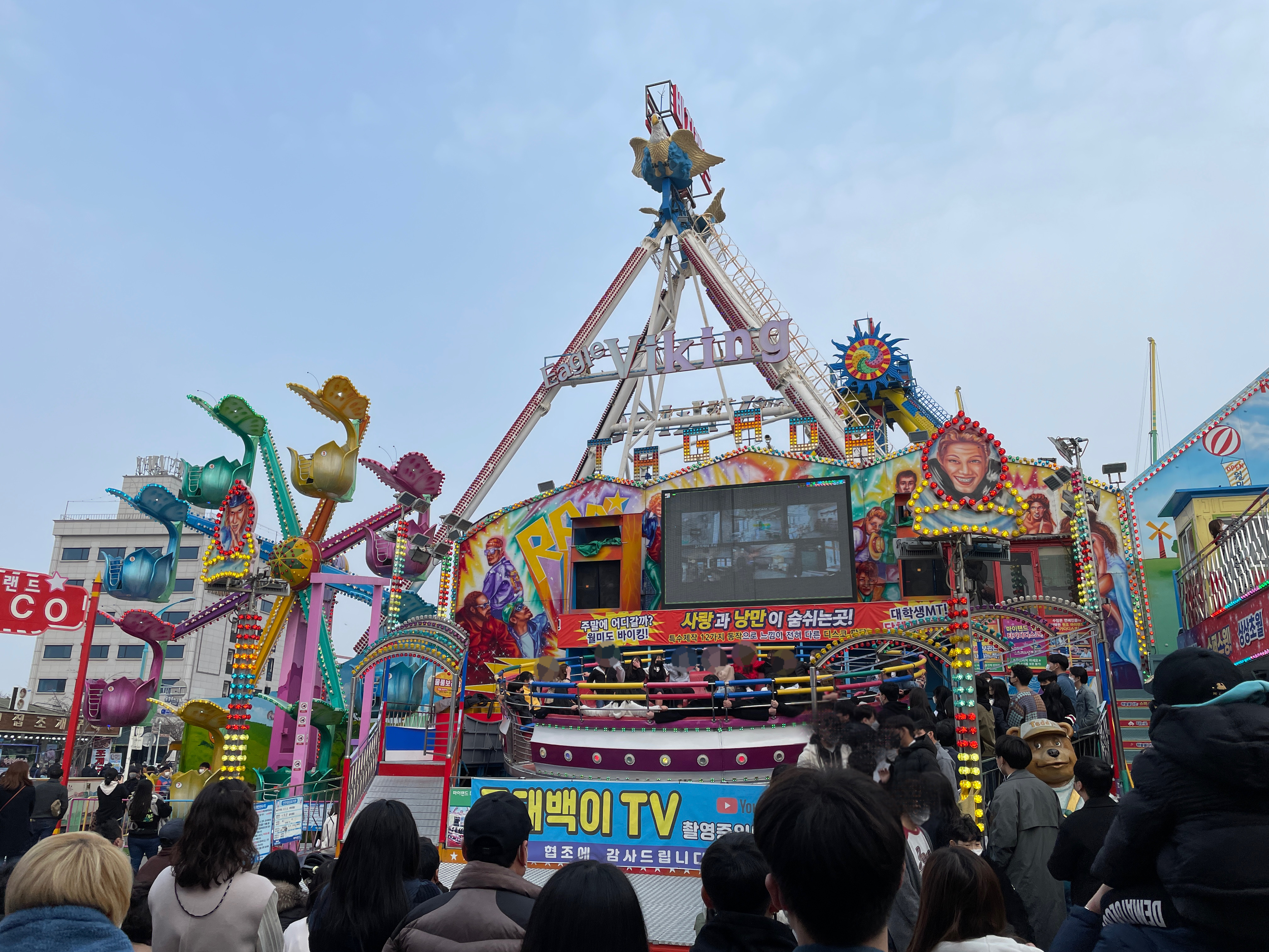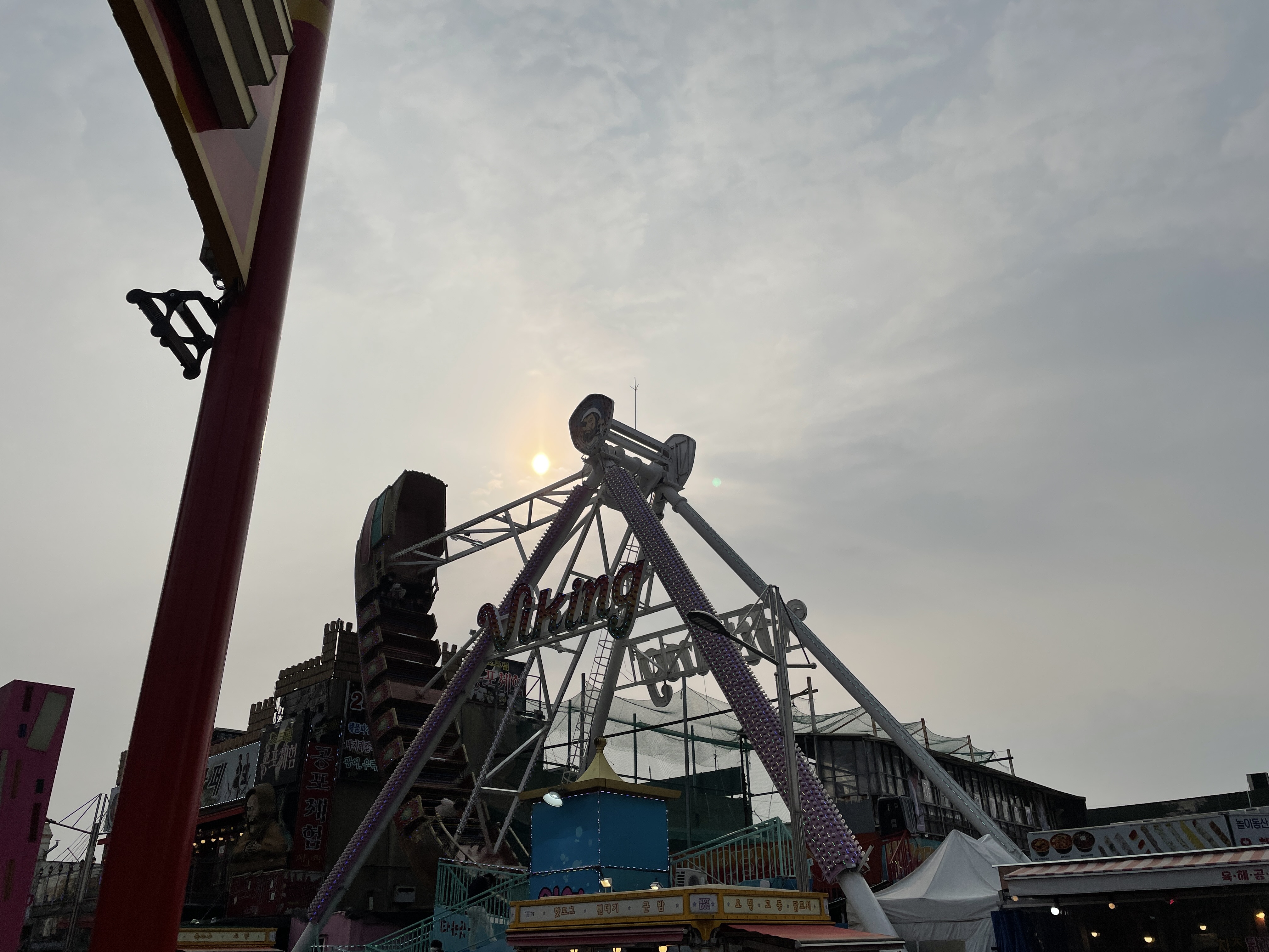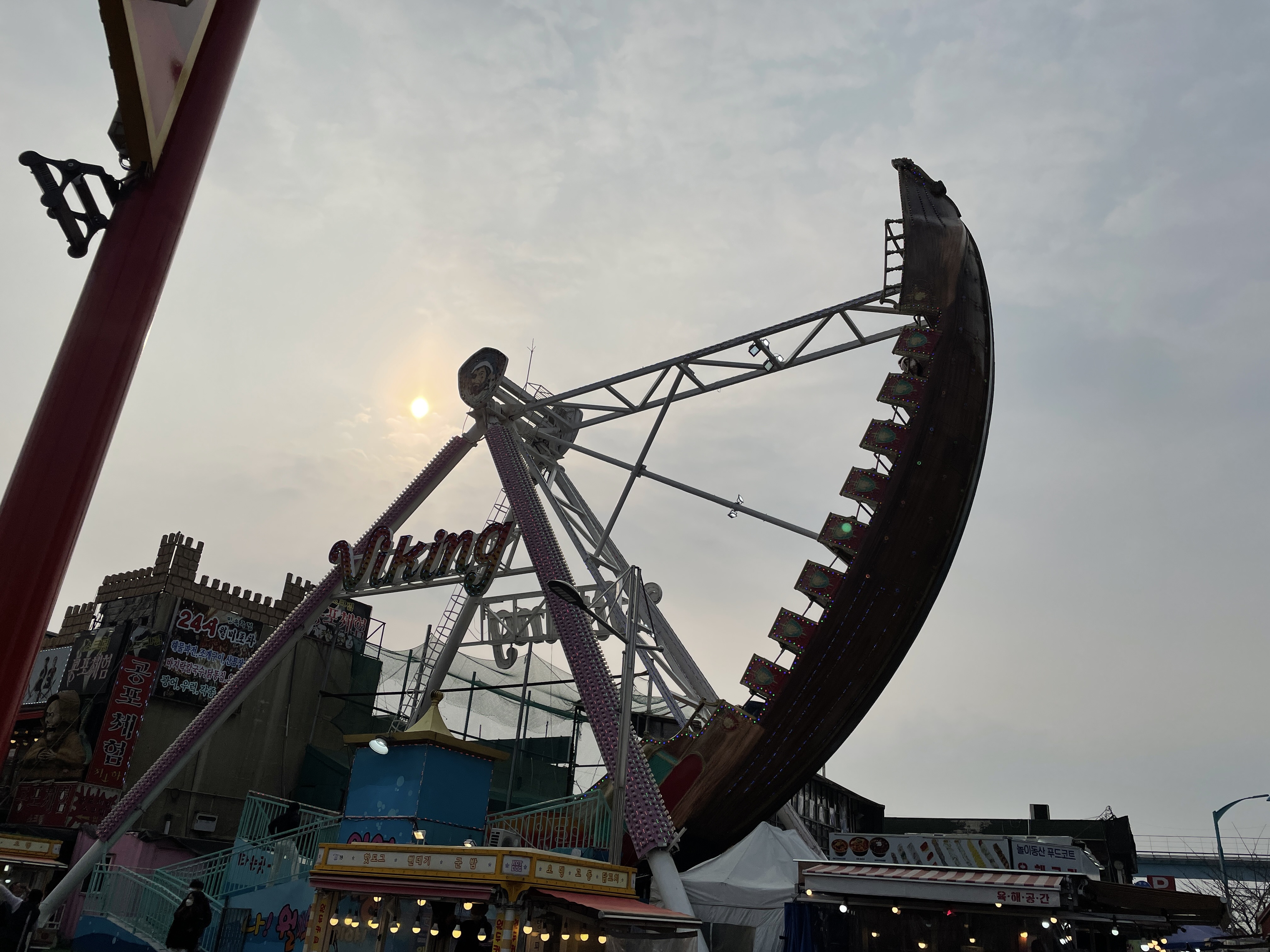 아니 근데.... 막상 타려고 사람들이 타는걸 보니 갑자기 무서워졌다. 생각보다 많이 올라가고 바이킹 배가 거의 땅이랑 수직이 될 정도이다.