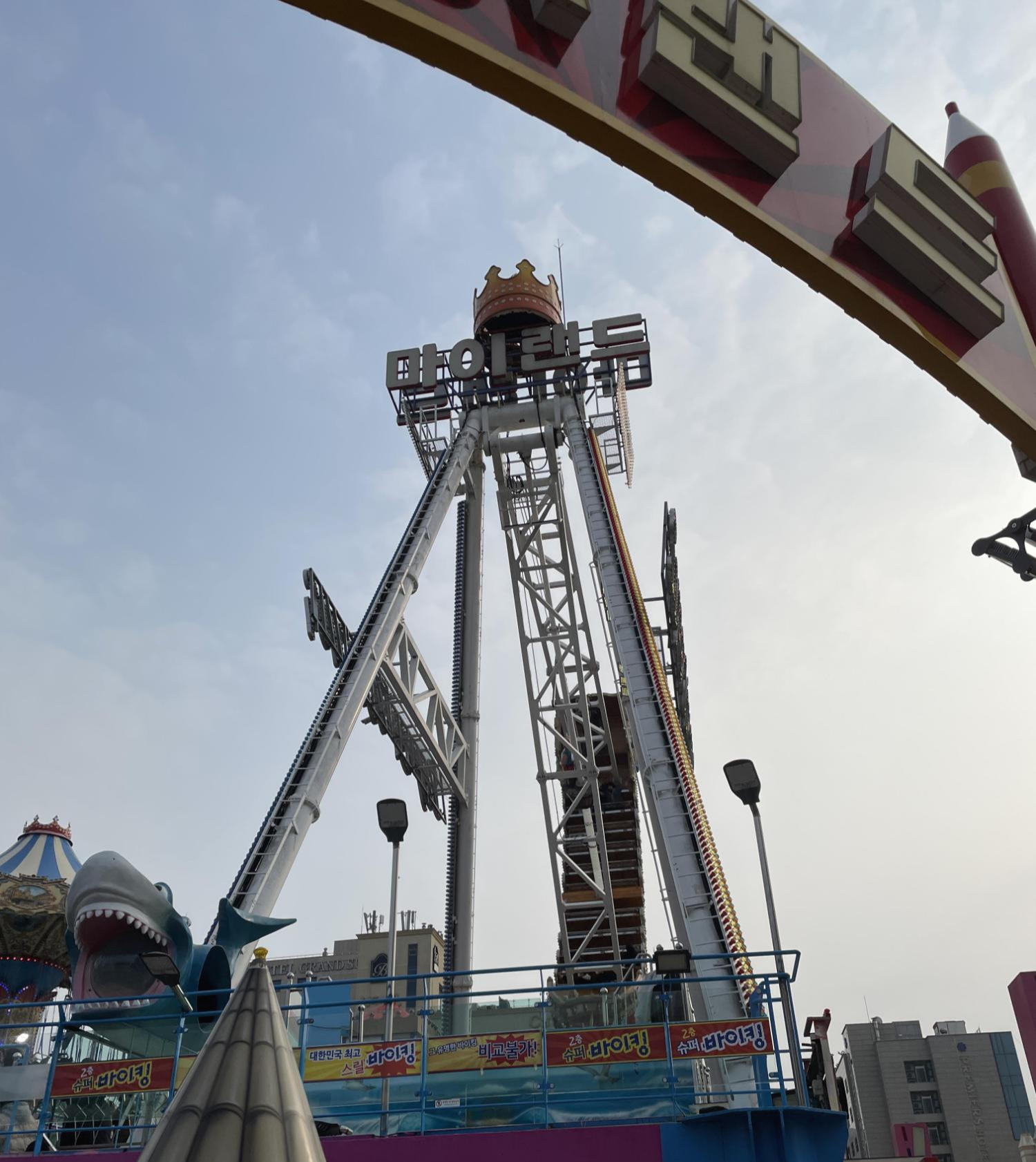 탑승후기? 와........ 높이 올라가긴 진짜 높이 올라간다. 밑에서 구경하던 것과는 차원이 다른 스릴감! 맨 뒤에서 타니 끝까지 올라가면 바로 아래 바닥 지면이 보일 정도이고 나도 놀이기구 잘 타는 사람인데 조금 무섭게 느껴졌다. 그리고 어느 순간 멀미가 날 것 같은 기분.......