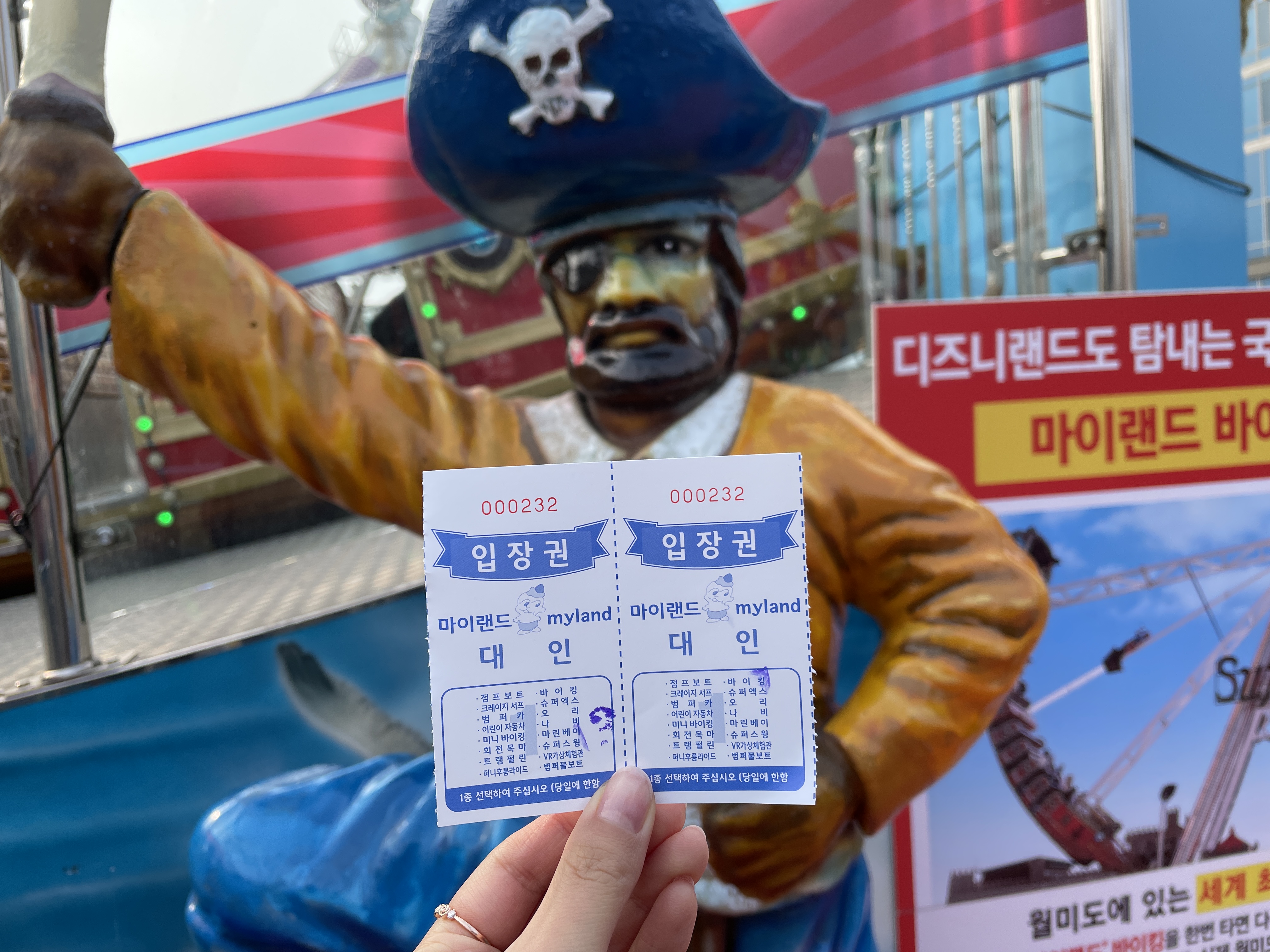 탈까말까 고민하느라 한 10분정도 길에 서있었는데 바이킹이 뭐 별거라고.... 한 번 타보기로 했다. 마이랜드 1층에 매표소가 있어서 바이킹 탑승권을 구매했다.