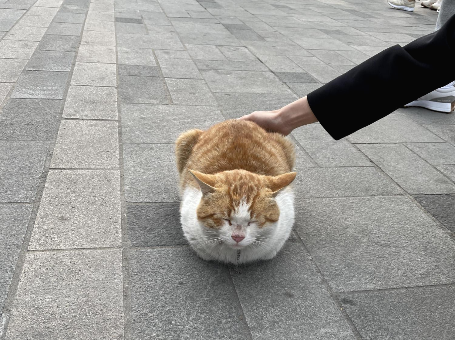그러다가 지나가는 강아지가 고양이가 반가웠는지 앞발로 고양이를 한 번 툭 건드렸는데 사람이 만질 때는 눈길 한 번 안주던 고양이가 앞발로 강아지 얼굴을 확 때렸다. 놀란 강아지는 주인 뒤로 숨고 안아달라고 낑낑거렸다ㅠㅠ 불쌍한 강아지...... 강아지가 가고 나니 언제 그랬냐는듯이 다시 눈감고 취침... 신기한 고양이였다.