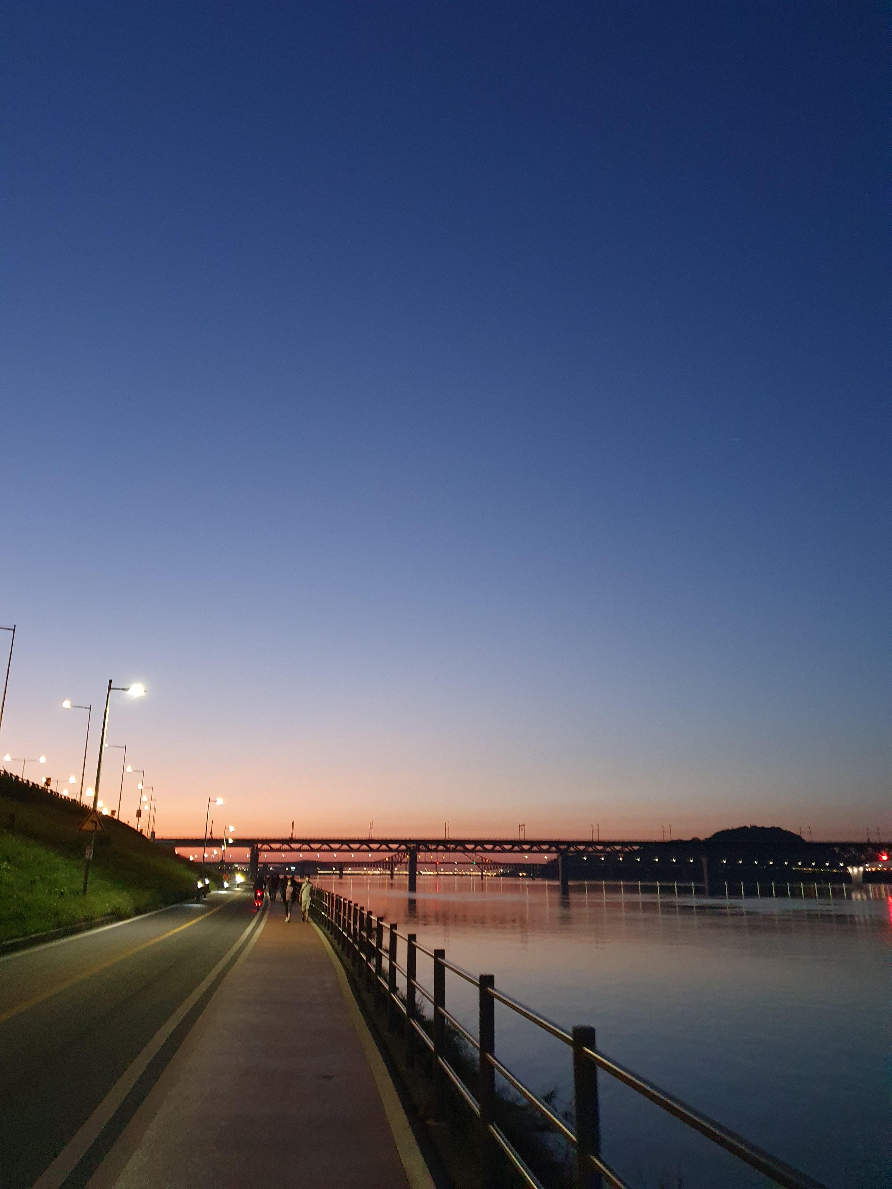 근처 한강 공원에 가서 산책을 합니다.