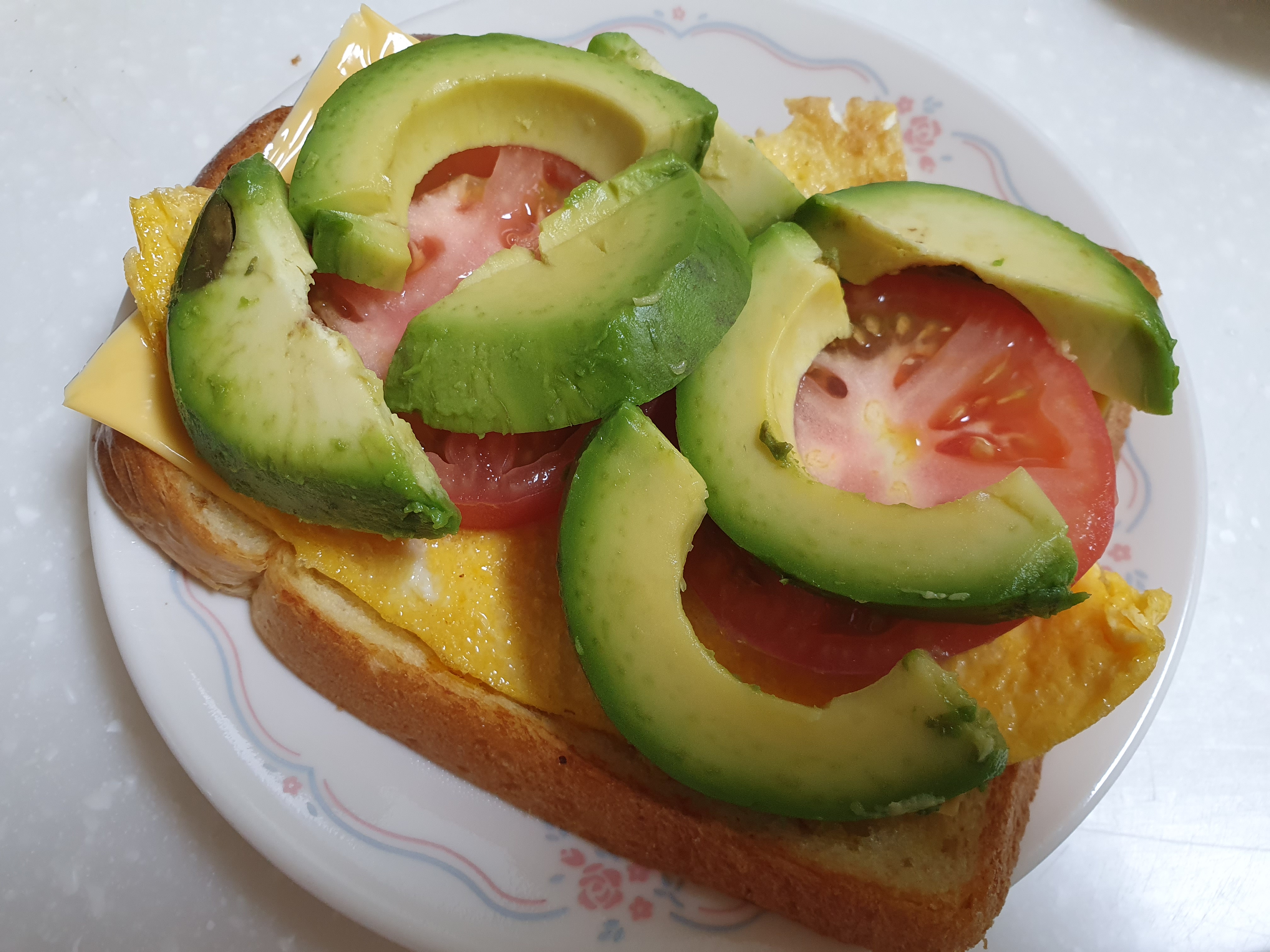 위에 계란와 치즈, 토마토, 아보카도를 올리면 끝!