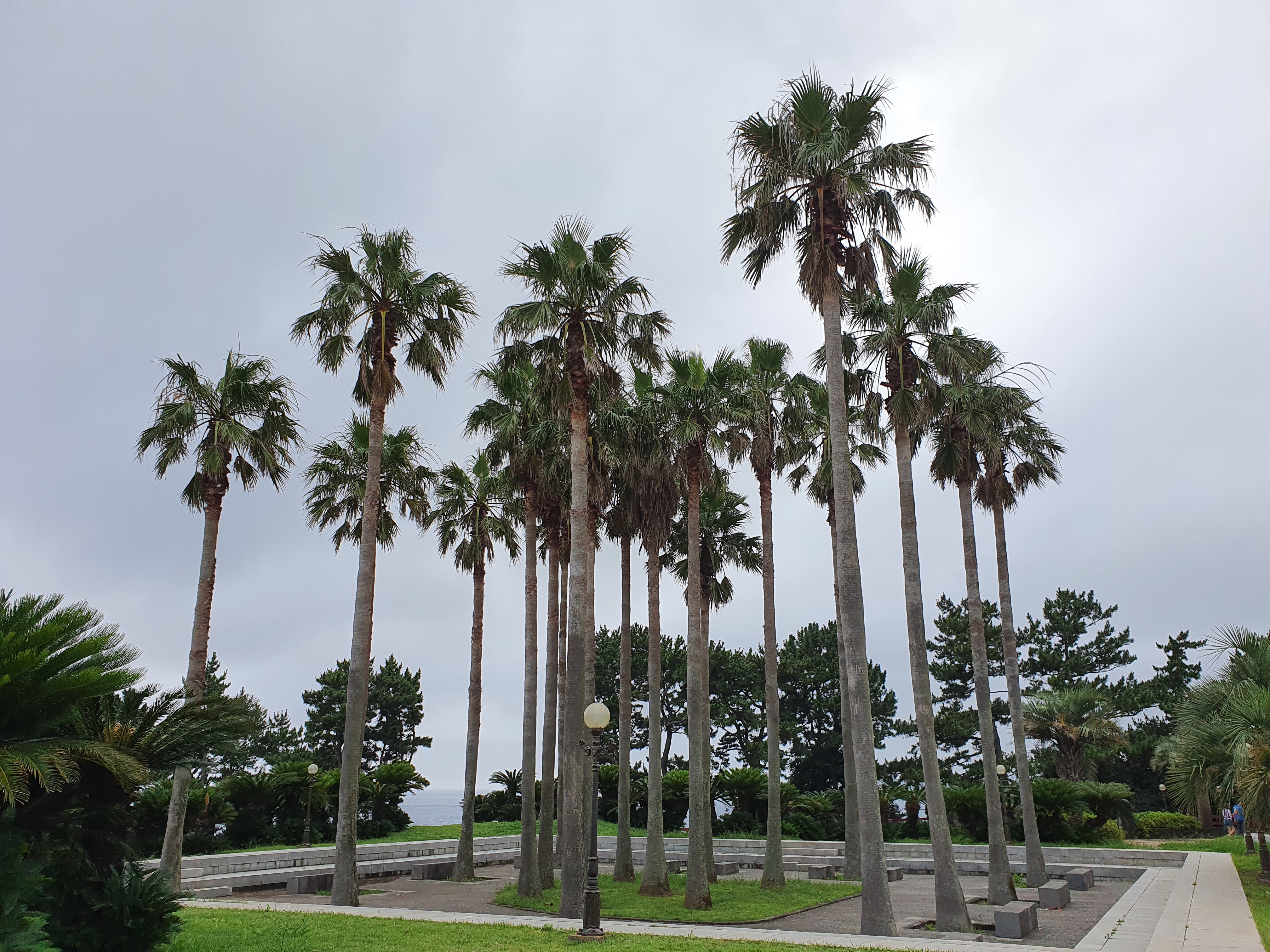 요 사진은 뒤에 키 큰 야자수가 있어서 키 작은 야자수가 더 귀엽게 느껴지는 것 같아요.