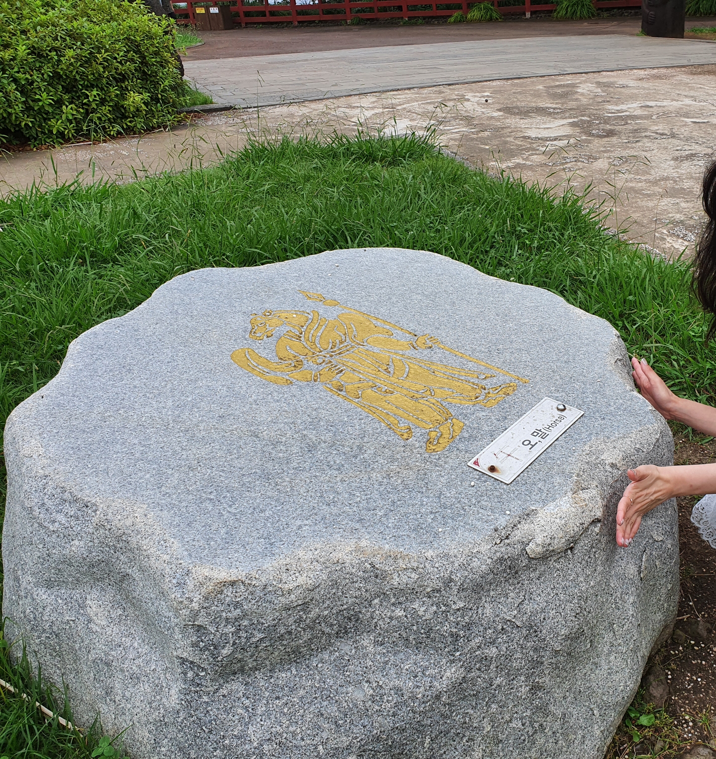 12간지의 바윗돌이 원형을 그리며 쭉 놓여 있어서 각자의 띠에서 인증샷도 남겼어요. 저희 뿐만 아니라 많은 사람들이 자축인묘진사오미신유술해 앞에서 사진 많이 찍으시더라구요.