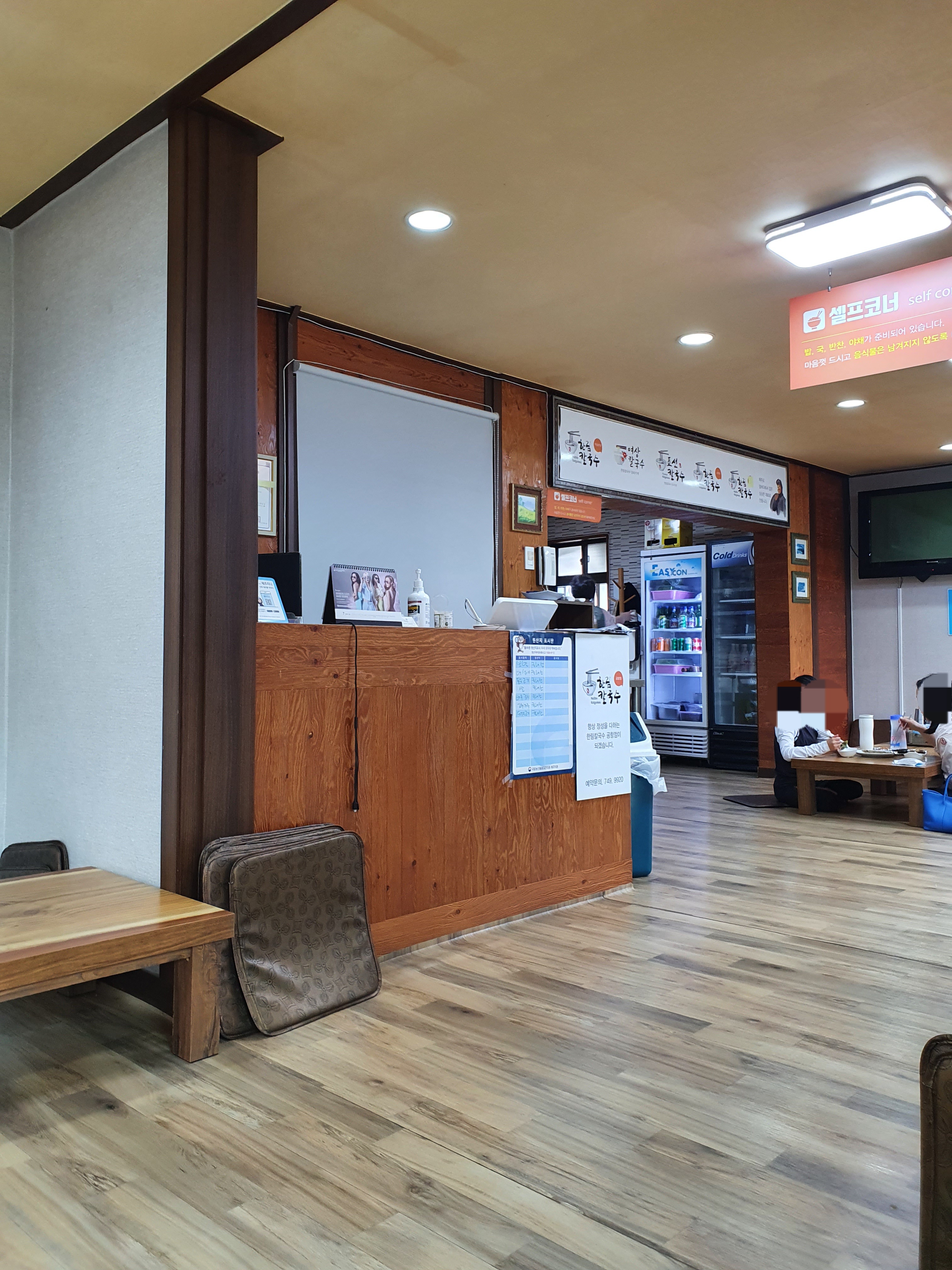문을 열고 들어오면 신발을 벗고 안으로 들어가셔야 해요. 깔끔한 한림칼국수 간판이 저흴 맞아줍니당!