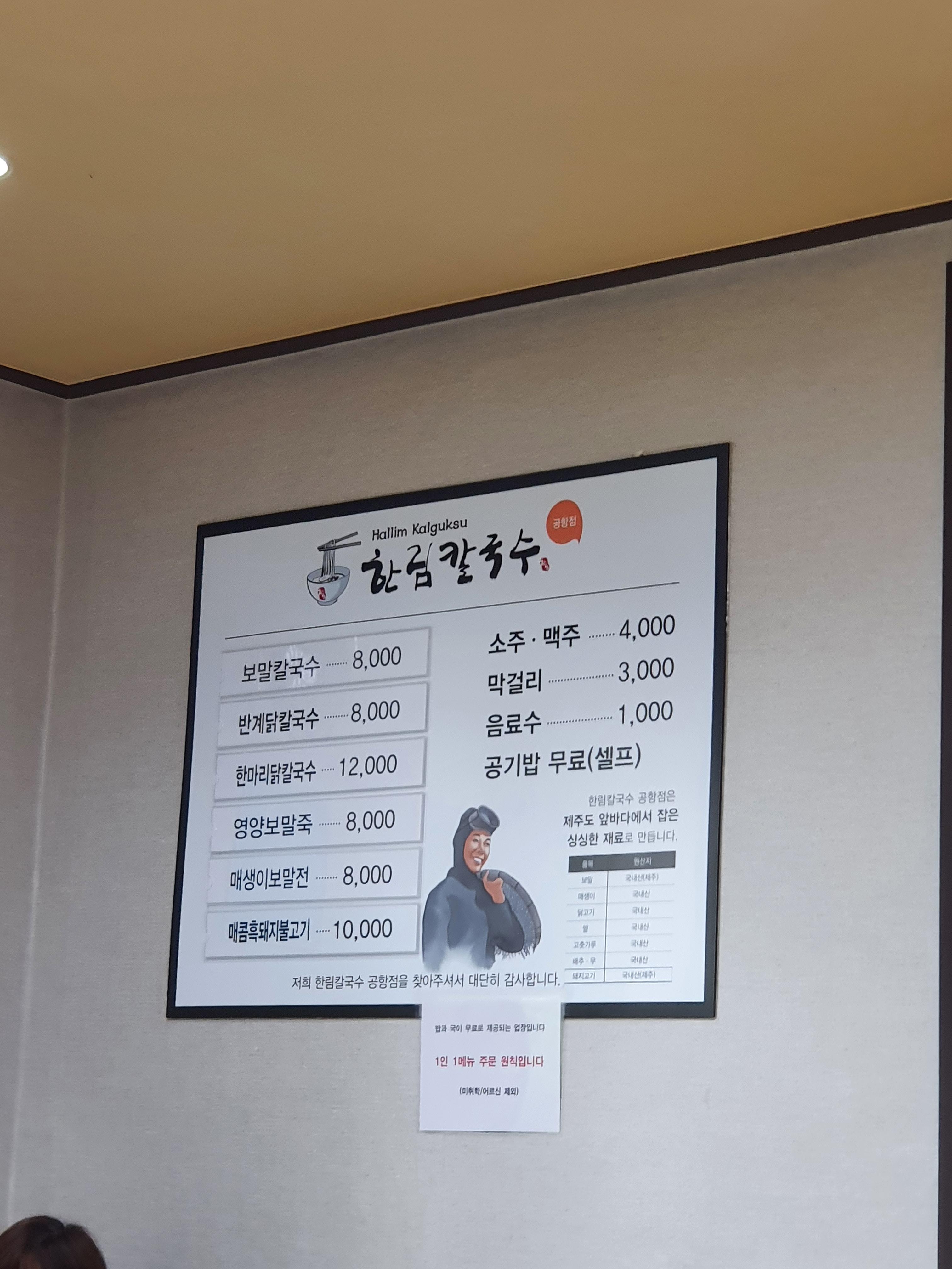 비 많이 올거라고 해서 걱정했는데 흐리기만해서 정말 다행이에요. 대신 바람이 엄청 많이 불어요. 오늘은 공항에 도착하자마자 아침 먹으러 한림칼국수 제주공항점에 갔어요.