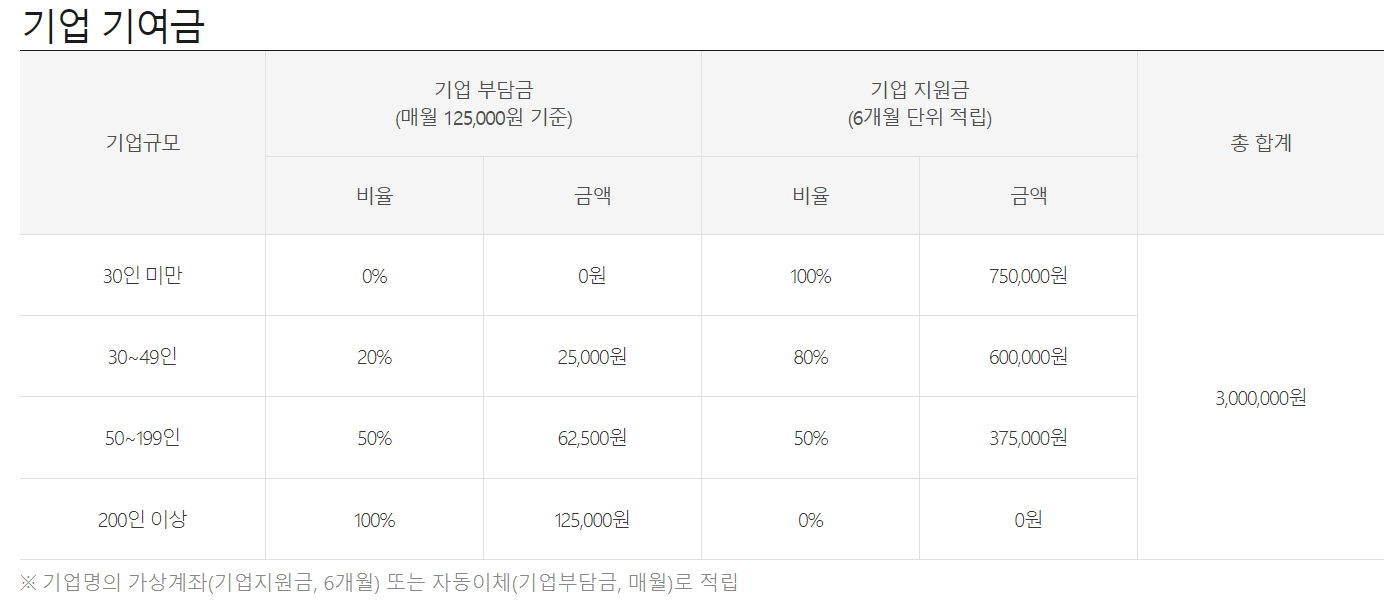 ② 기업 : 기업 규모에 따라 적립금액과 지원방식에 차이가 있습니다.