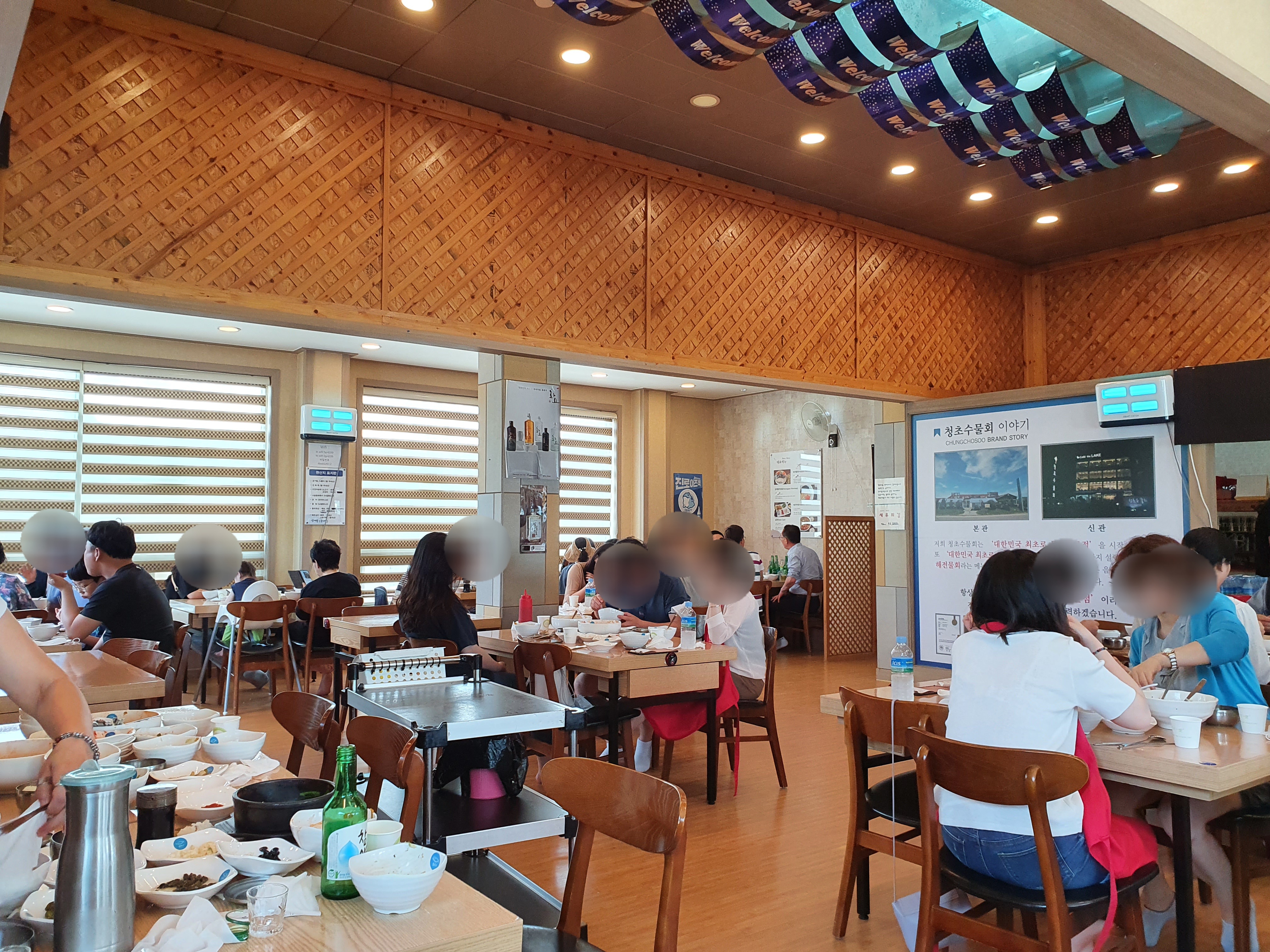 청초수물회 일산점의 전경입니다. 건물 전체가 식당이구요, 사실 저희는 어디 들렸다가 식당으로 간거라서 점심시간이 조금 지났을 무렵 도착했는데도 속초에서 워낙 유명한 식당이라 그런지 일산점에도 사람이 많았어요.