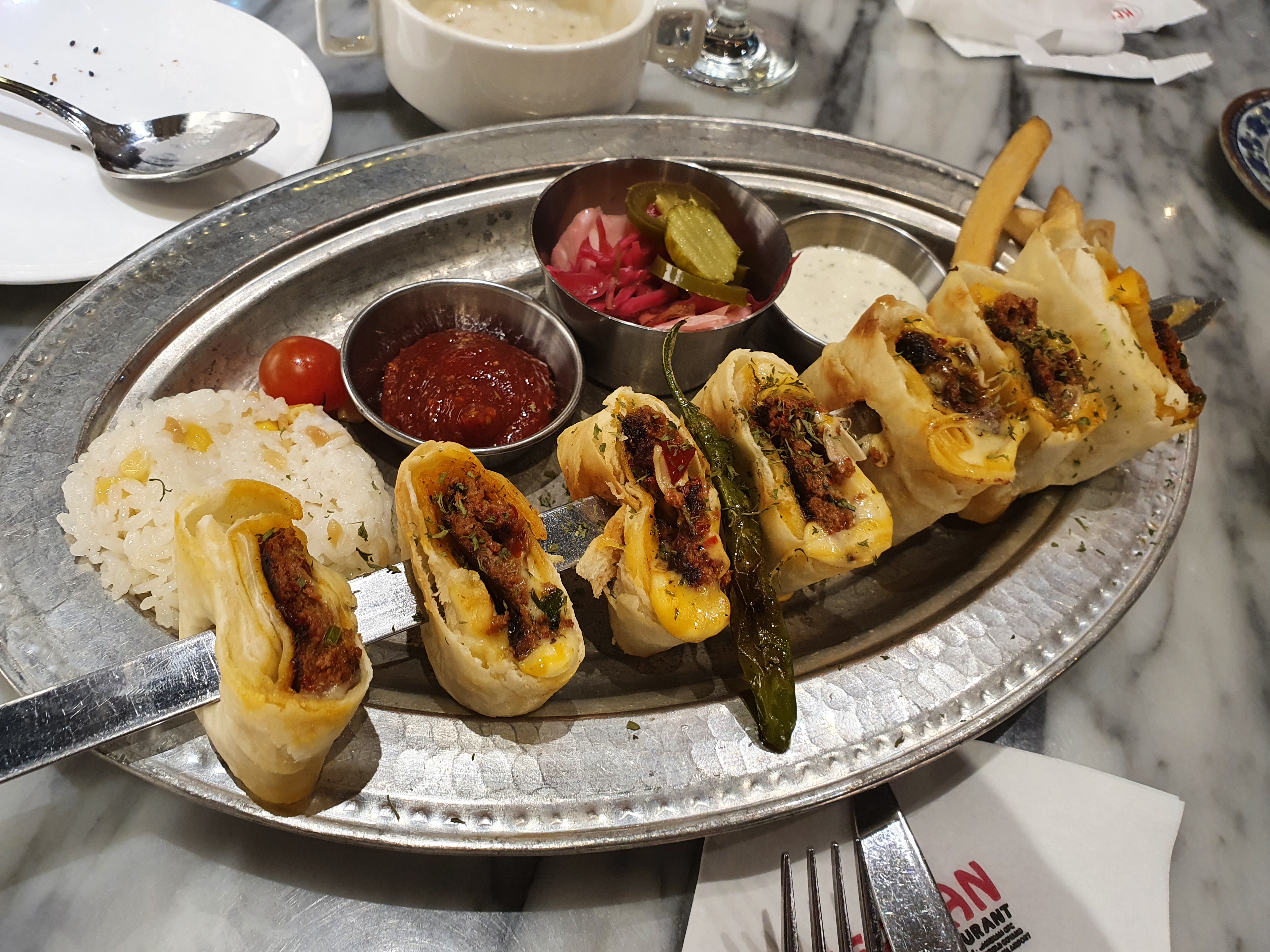 짜잔~ 위에가 트러플 치즈스테이크, 아래가 아보카도 치킨 케밥입니다. 트러플 치즈스테이크는 빵 안에 고기, 치즈, 야채가 들어 있구요, 아보카도 치킨 케밥 안에는 아보카도 소스가 들어가 있어요. 두 개 모두 느끼하지 않고 담백한 맛! 아 이런게 터키음식이구나 배우고 갑니다. 터키음식.. 제 입맛에 잘 맞았어요! 사실 세 명이서 메뉴 두 개만 시켜서 조금 부족하지 않을까 생각했었는데 전혀! 딱 알맞게 먹을 수 있었어요.