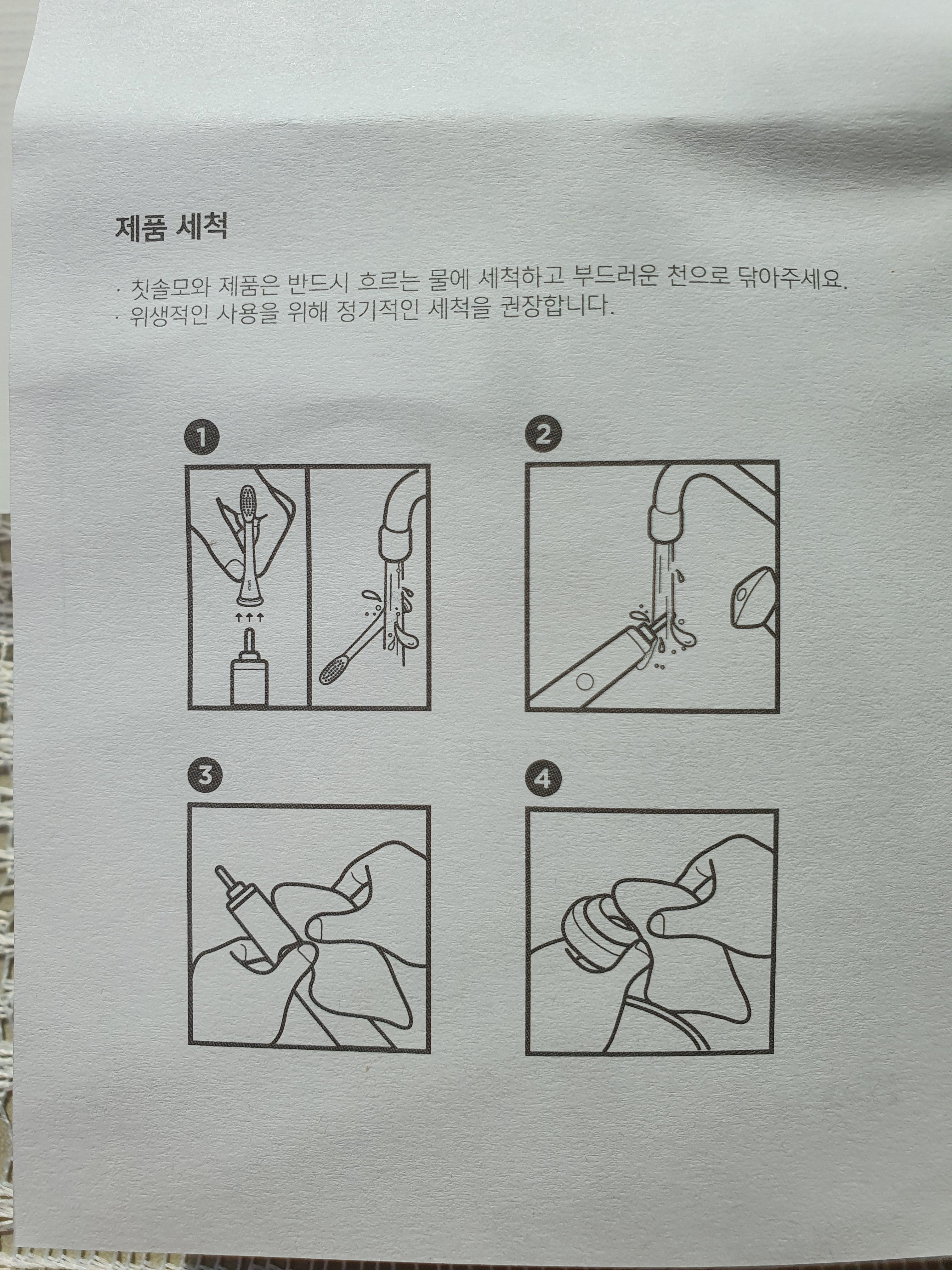 양치를 한 후에 세척은 물로 구석구석 깨끗이 해준 후에 물기를 잘 닦아줍니다.