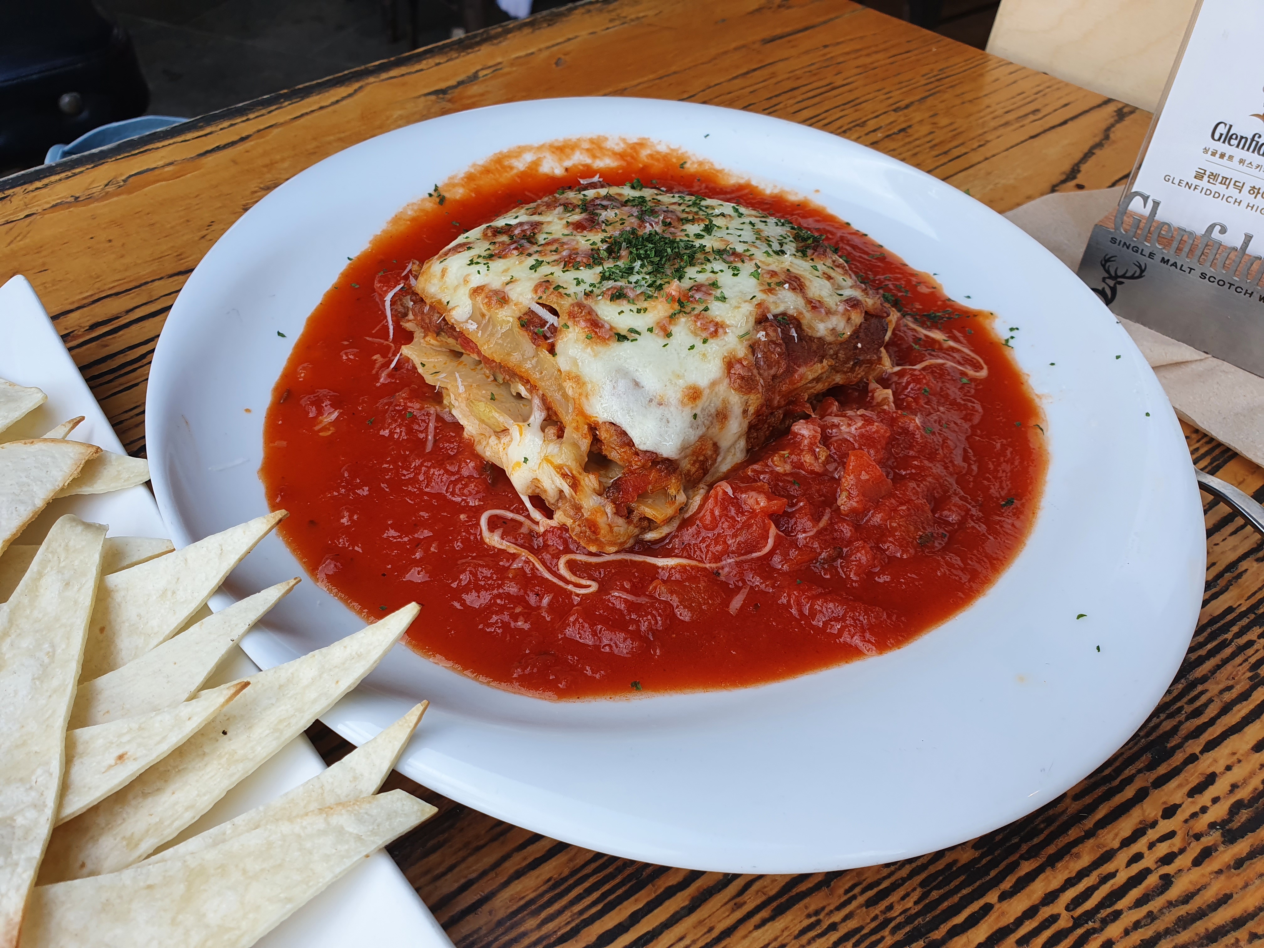 두 번째로 나온 라자냐~ 양도 꽤 푸짐했고 치즈가 듬뿍, 토마토도 듬뿍 들어가있어서 맛있었어요. 역시 재료를 아끼지 않아야 음식이 맛있는 법이죠!