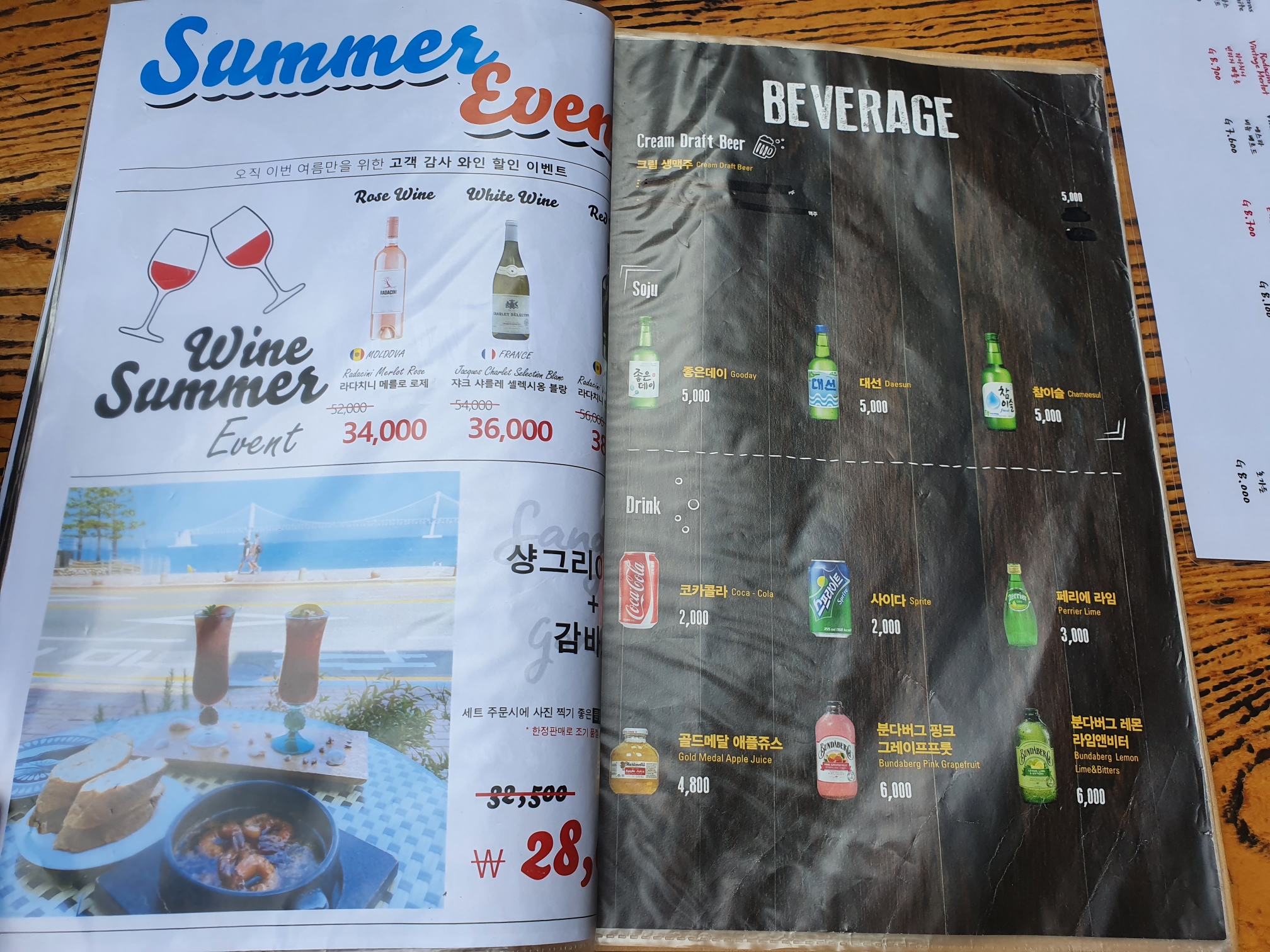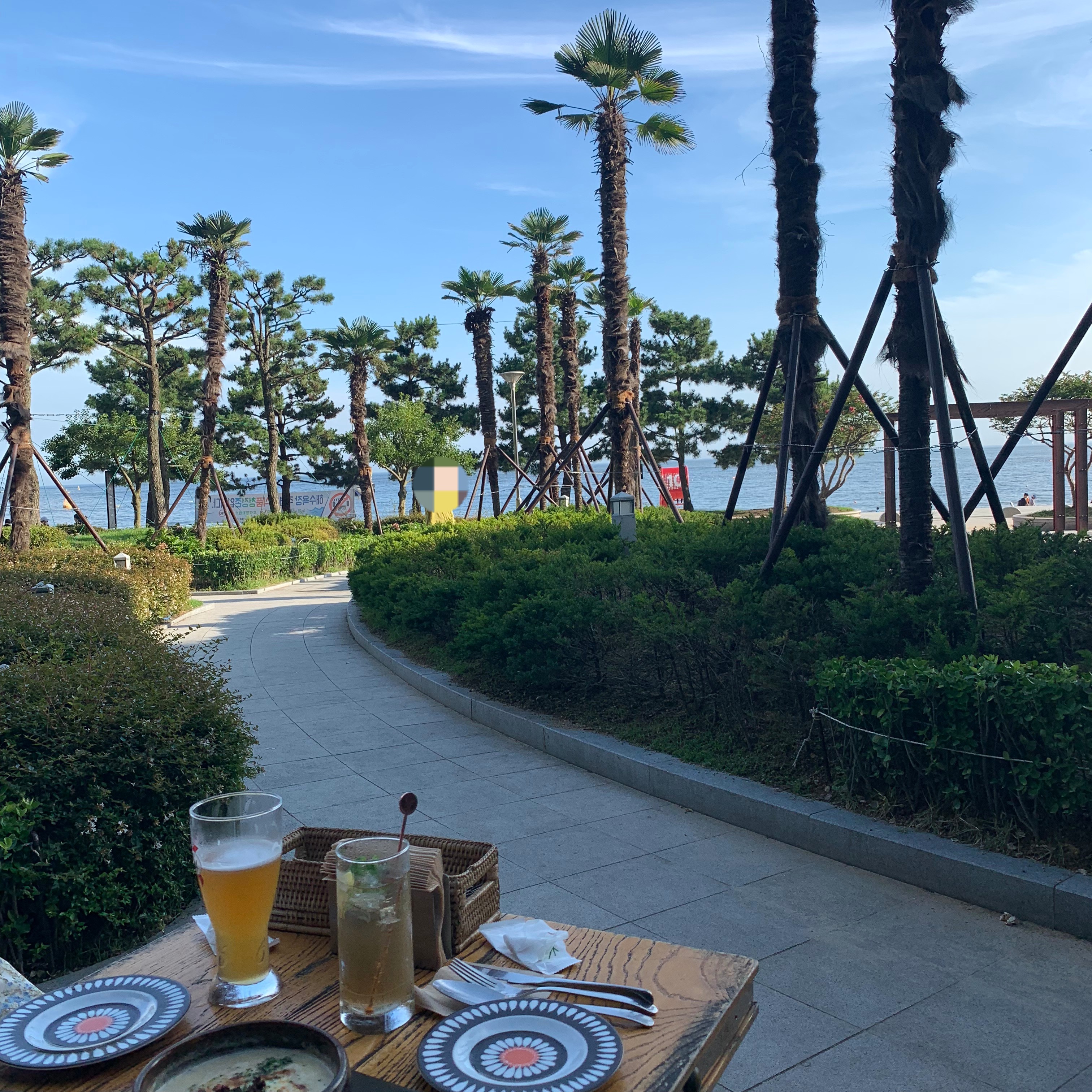 그래서 왔다갔다하면서 보게 된 곳에 들어갔어요. 아니 야외 테이블에 앉았어요! 그늘에 있으니까 또 덥지 않고 바닷바람이 불어서 시원하더라구요.
