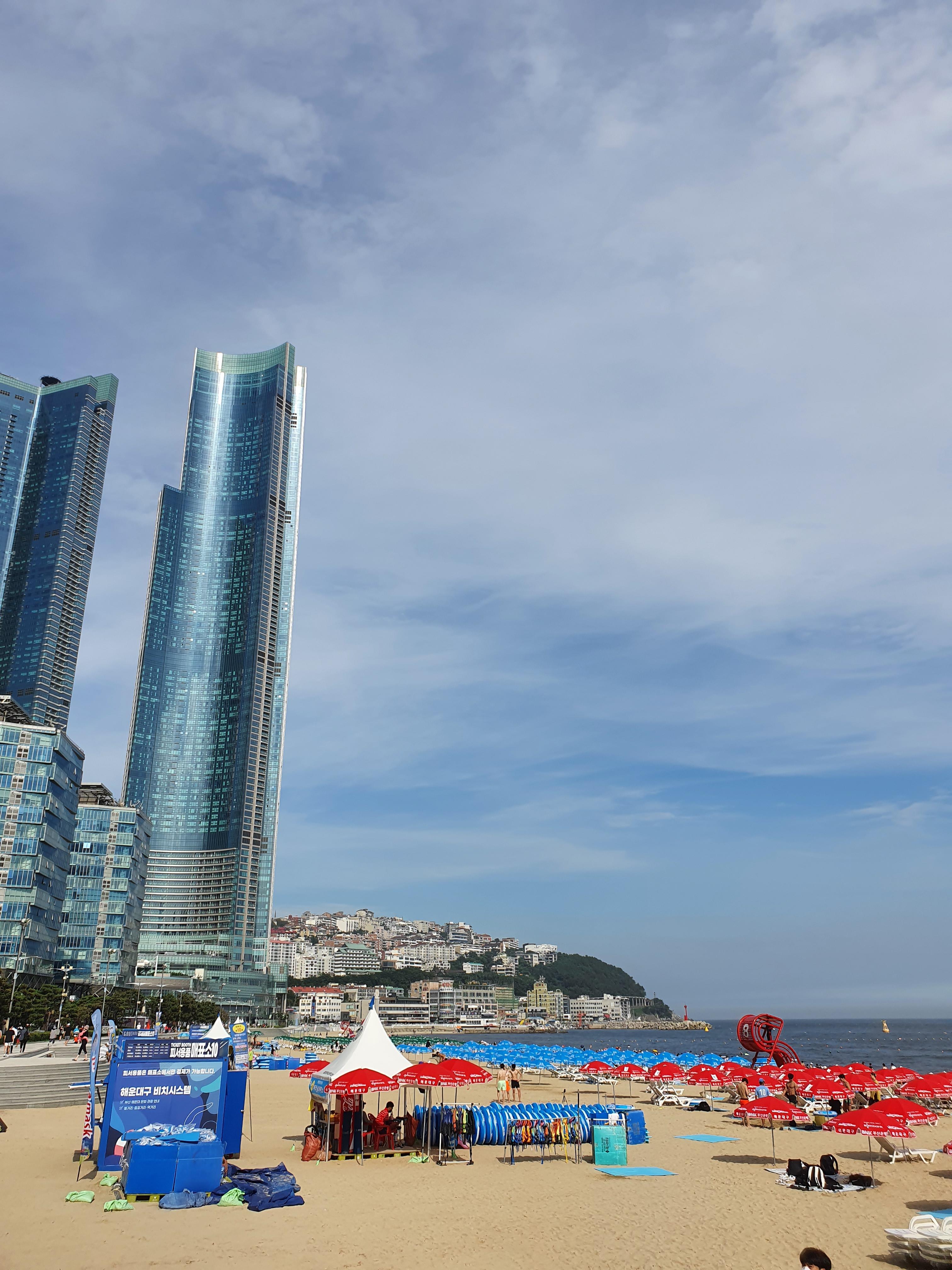 같은 한국 하늘 아래 있으면서도 날씨의 차이가 너무 심하네요. 해운대를 거닐다보니 해수욕하는 많은 사람들, 그리고 태양 아래 누워 태닝하는 외국인들이 많이 보였어요. 비치발리볼 하는 사람들까지!