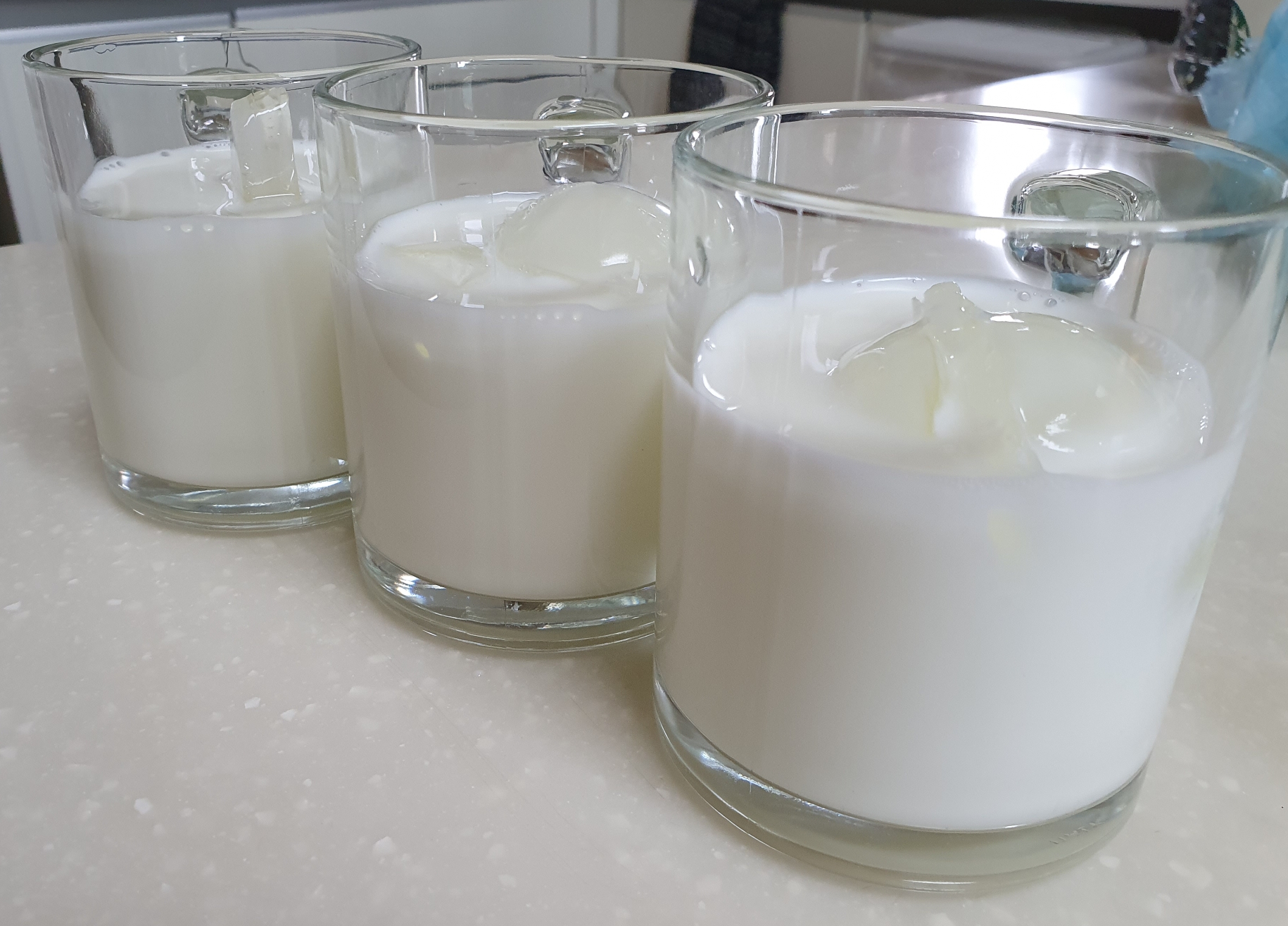 우유 위에 달고나 폼을 올리기 전에