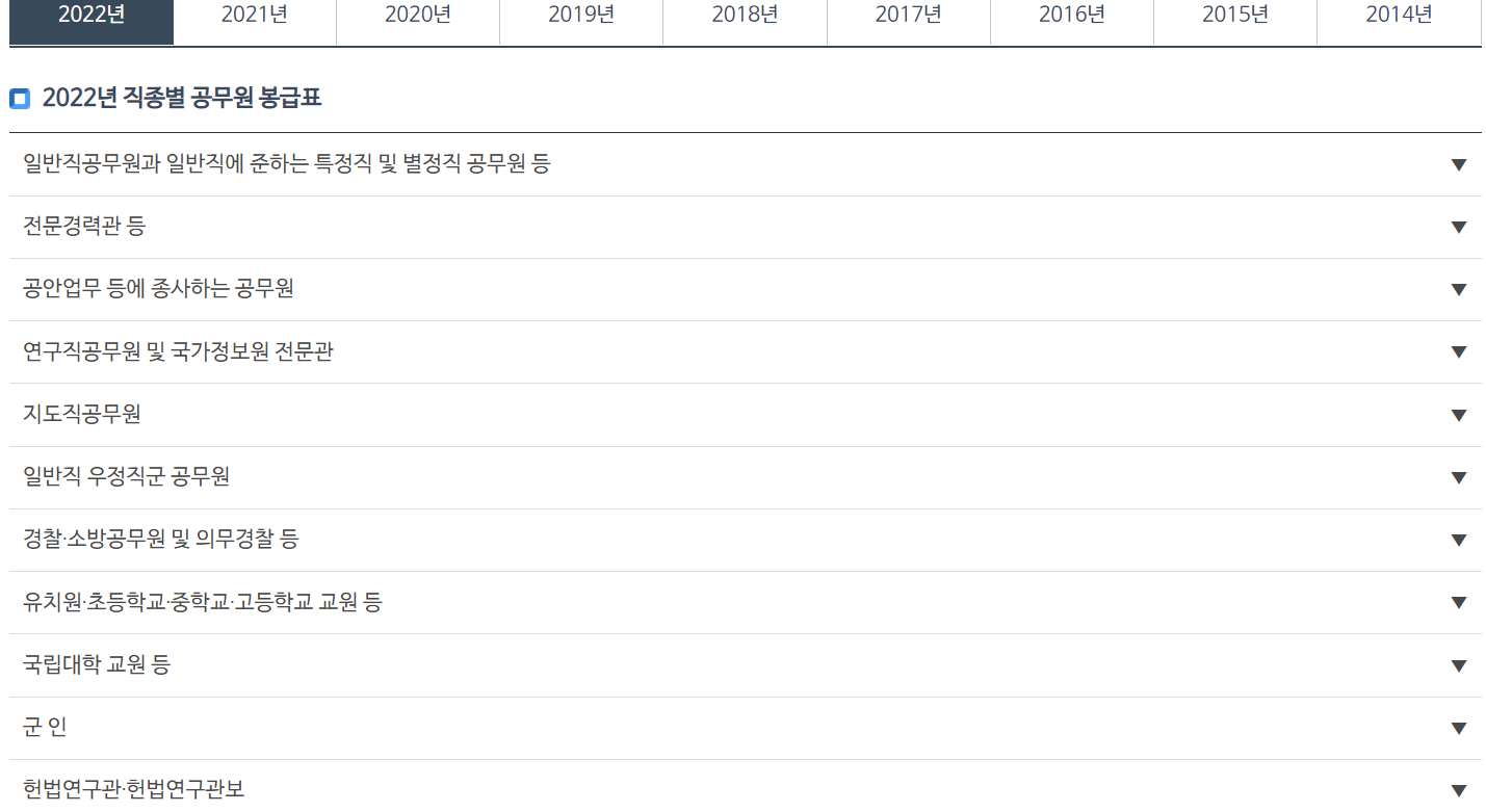2022년 공무원 봉급표는 인사혁신처 홈페이지에서 확인하실 수 있습니다.