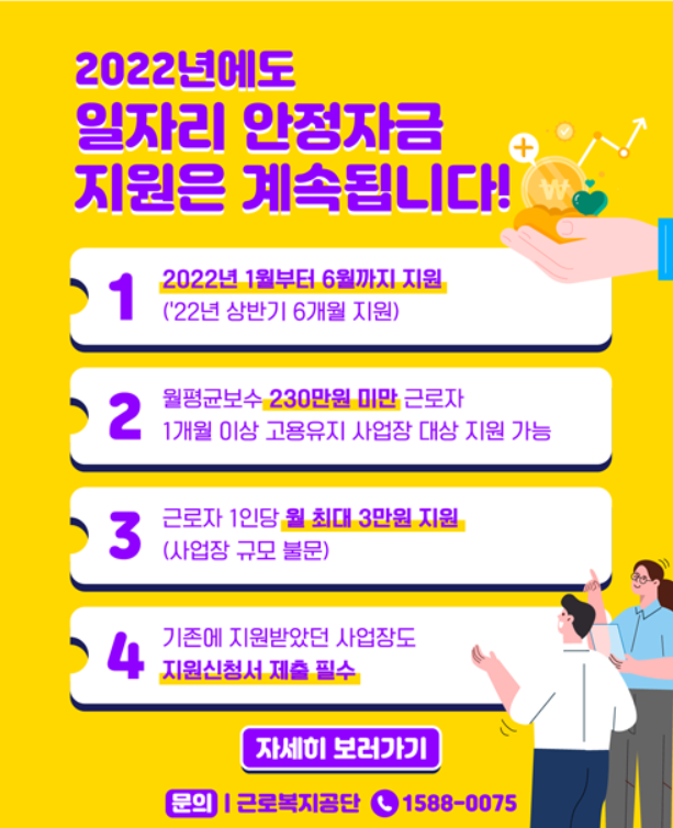 2022년 일자리안정자금 신청, 지원대상 및 금액 안내
